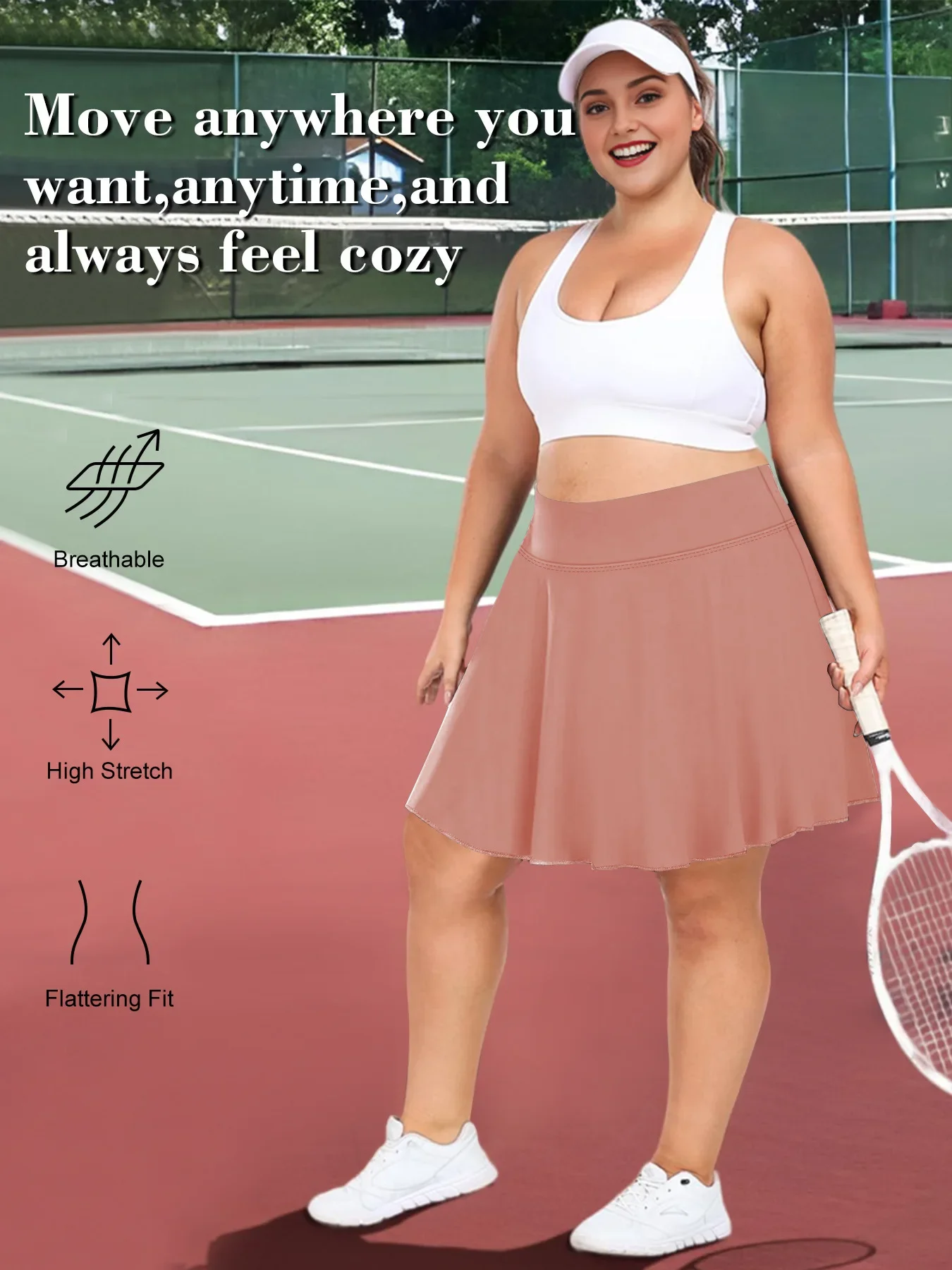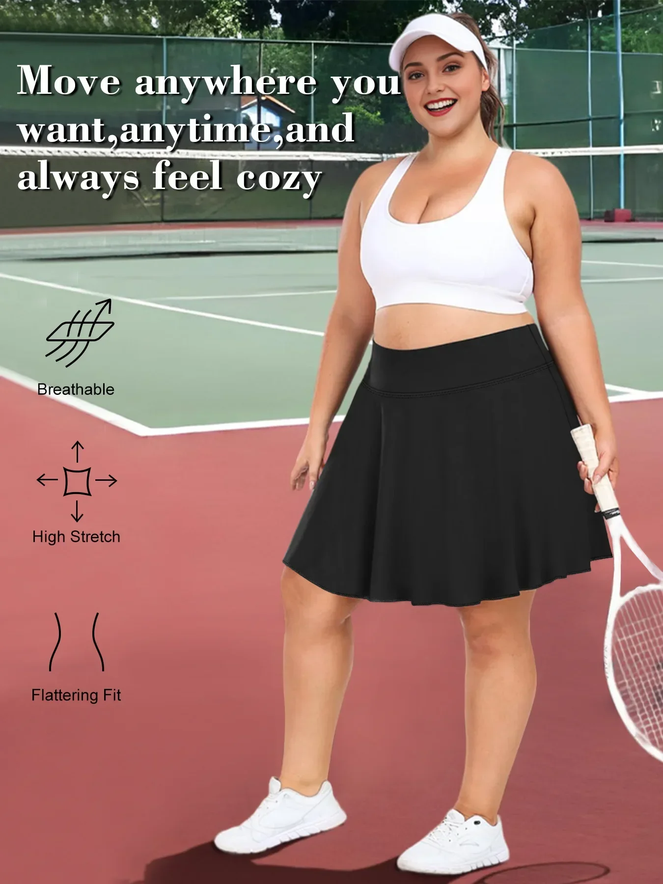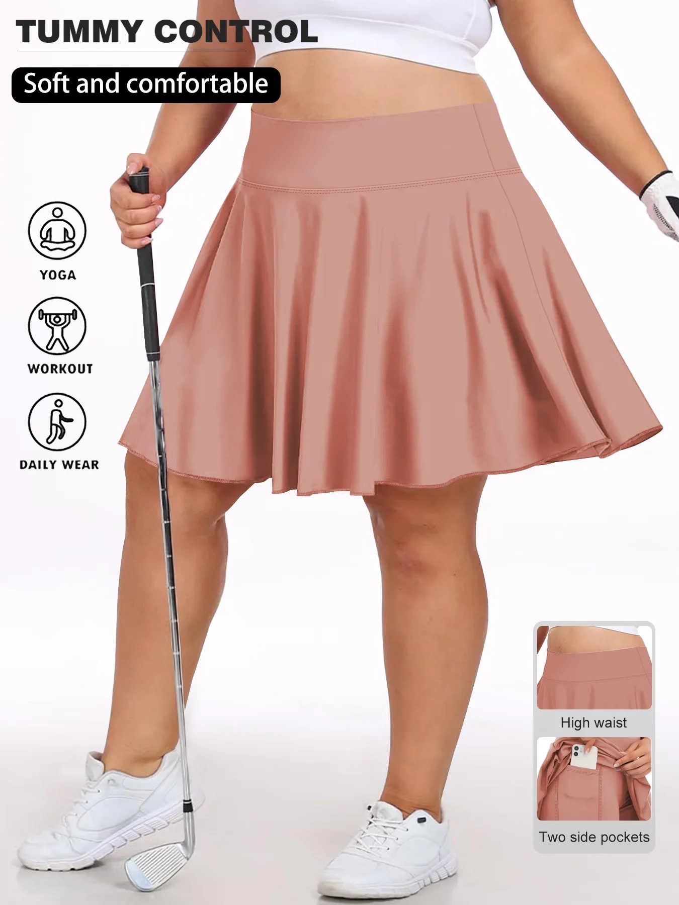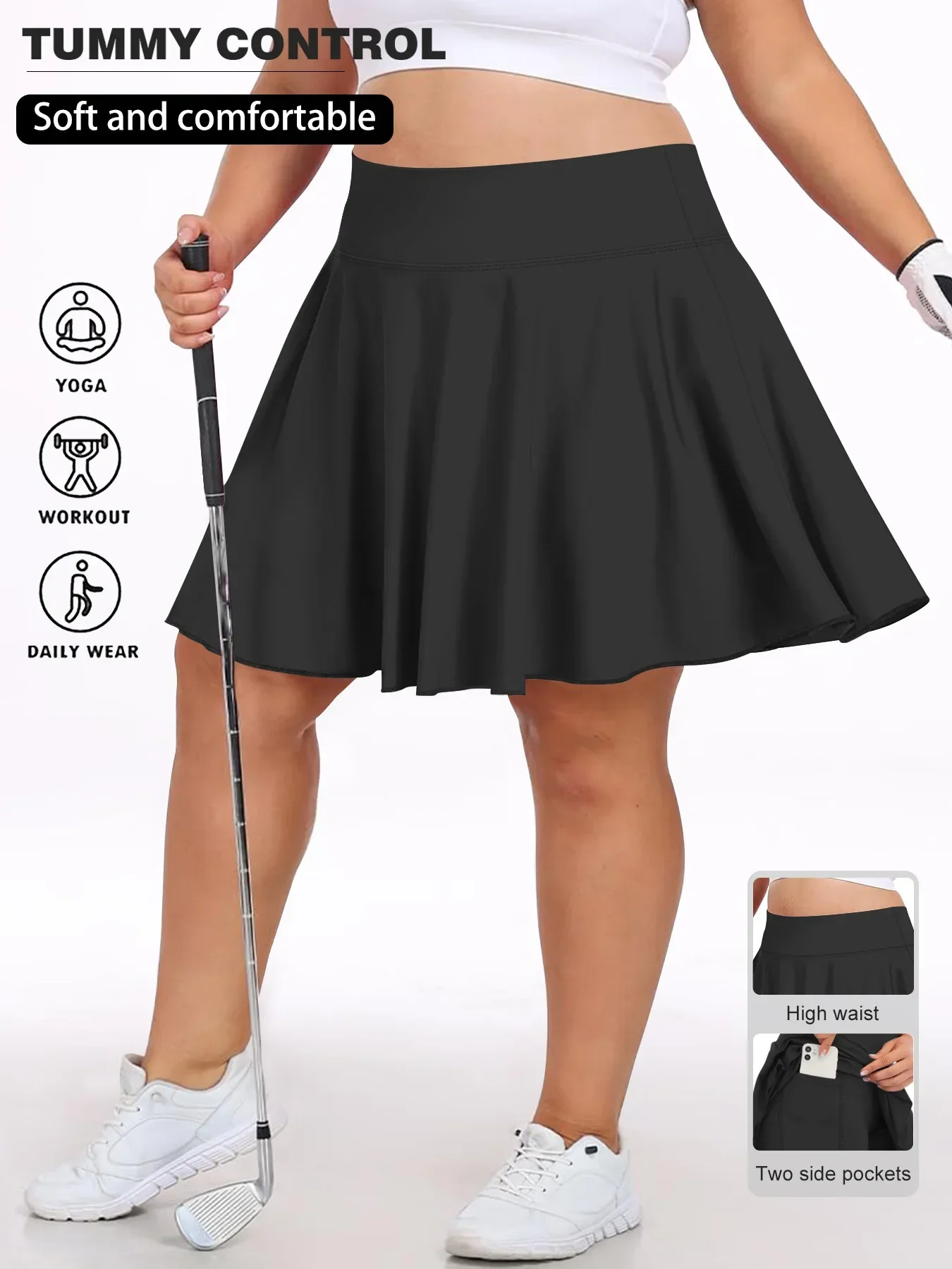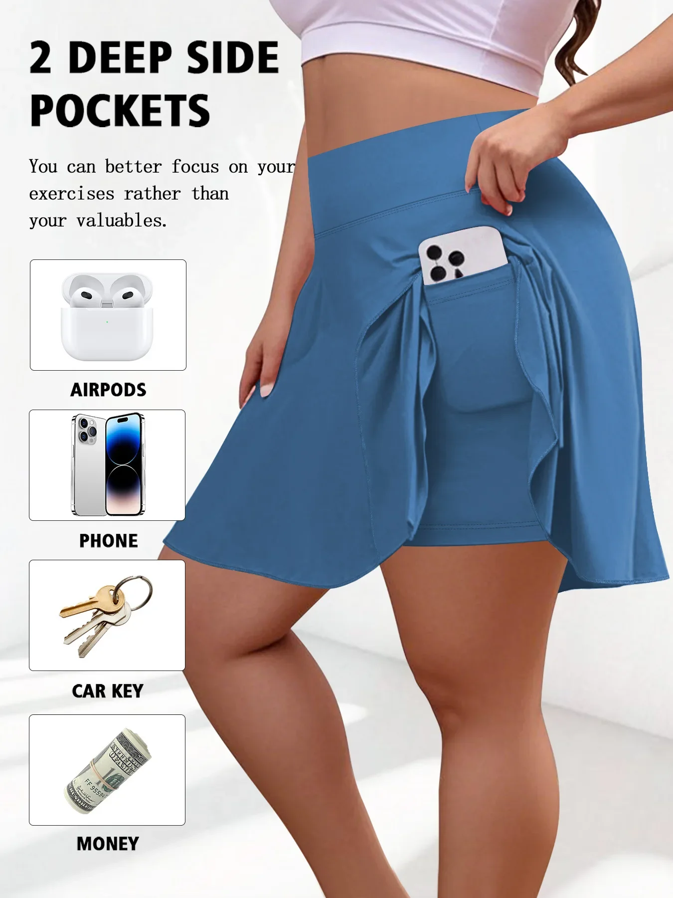 Plus Size Women with Pocket Short Skirt Fitness Short Skirt High Waist Fashion 200lbs Sports Short Skirt Gym Outdoor Solid Skirt