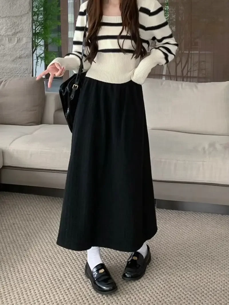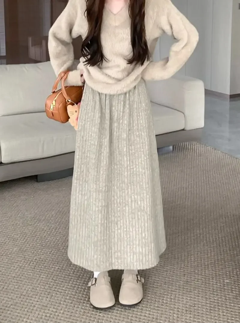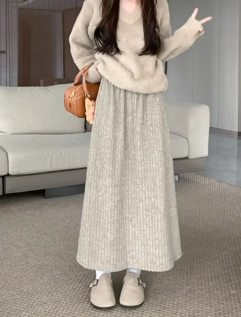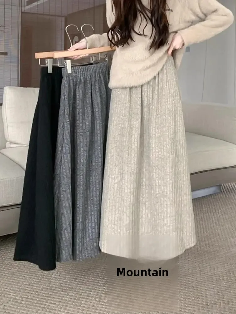 Plus Size Women's Fleece-Lined Thickened Skirt High-Waisted Slimming Medium-Length A- Line Korean Style New Arrival For Autumn/W