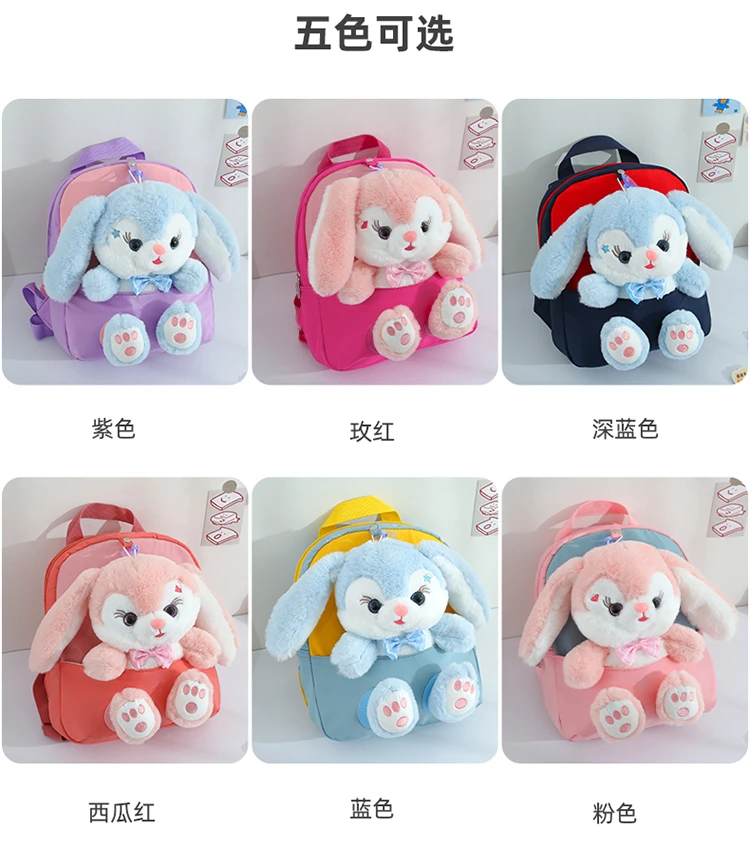 Plush 3D Rabbit Backpack for Boys Girls Kids Children SchoolBag Cute Bow Tie Cartoon School Bags Kindergarten Preschool Baby Bag