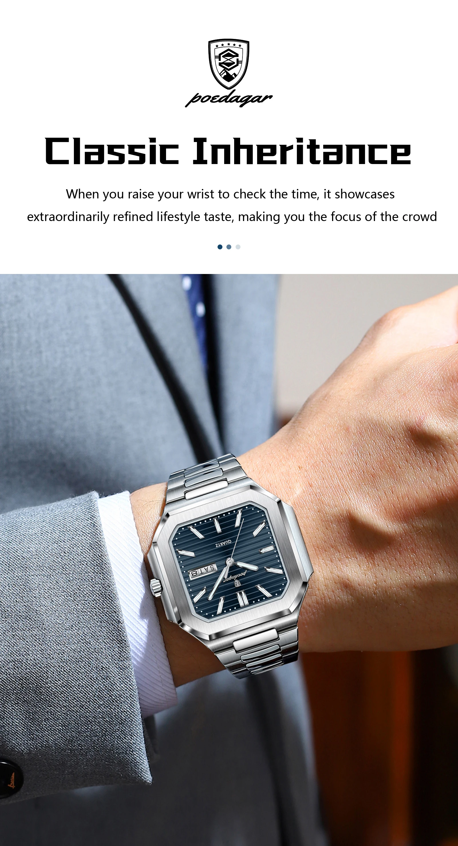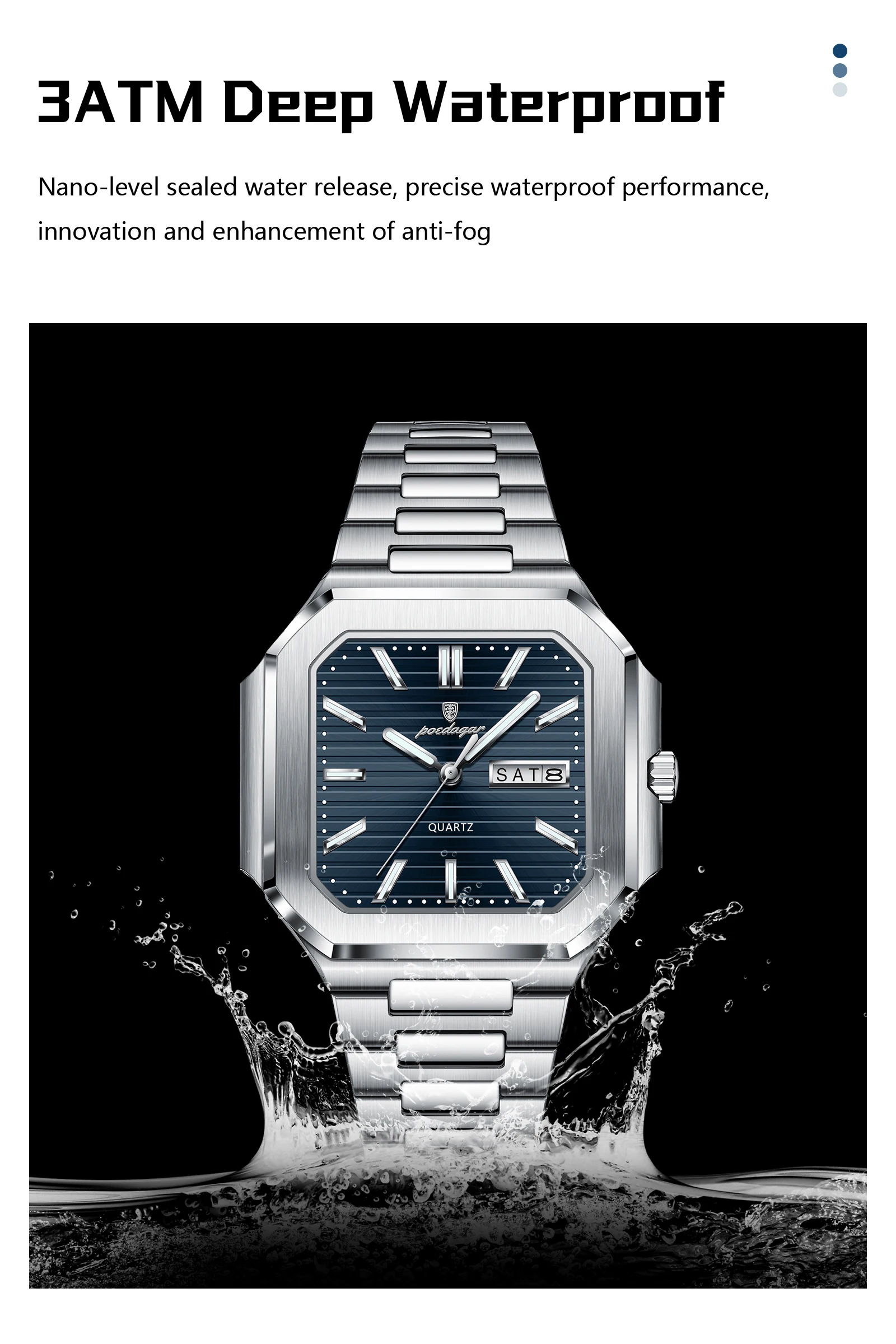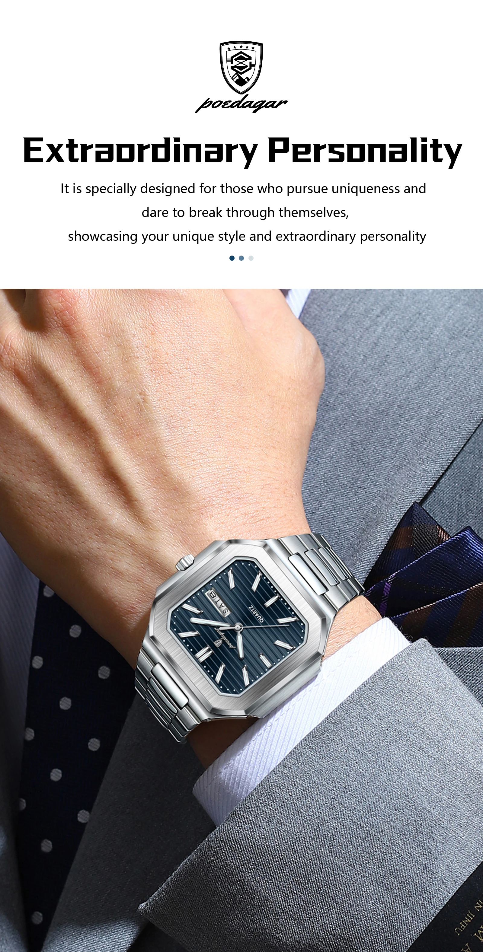 POEDAGAR Square Fashion Man Wristwatch Waterproof Luminous Date Week Quartz Men's Watches Stainless Steel Luxury Men Watch Reloj