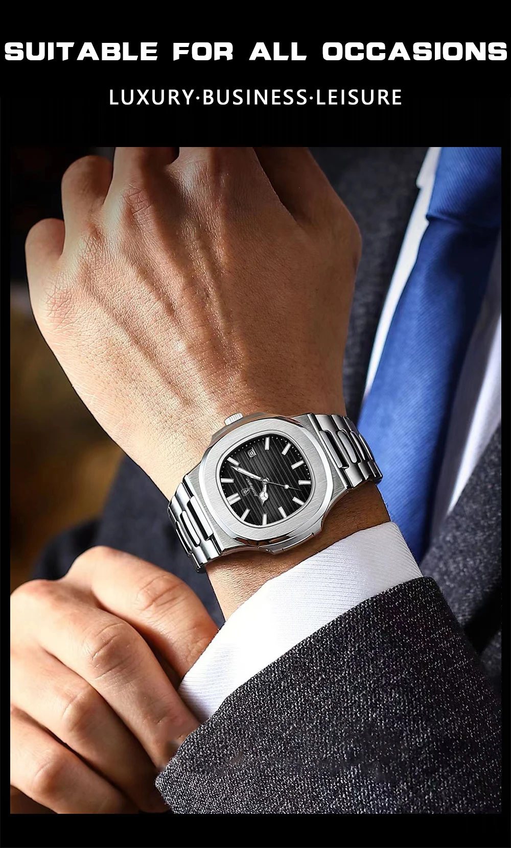 POEDAGAR Top Luxury Brand Man Watch Sports Waterproof Luminous Date Men Wristwatch Square Dial Quartz Men's Watches High Quality