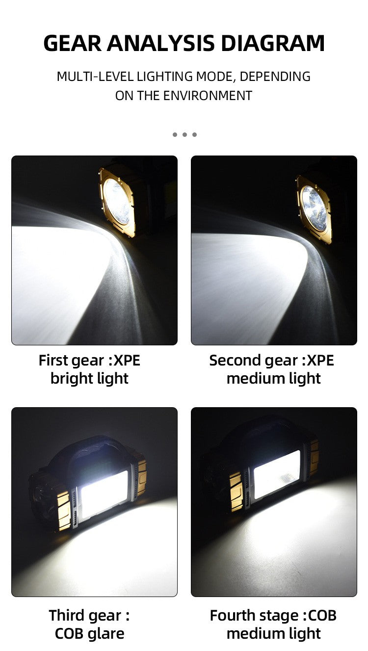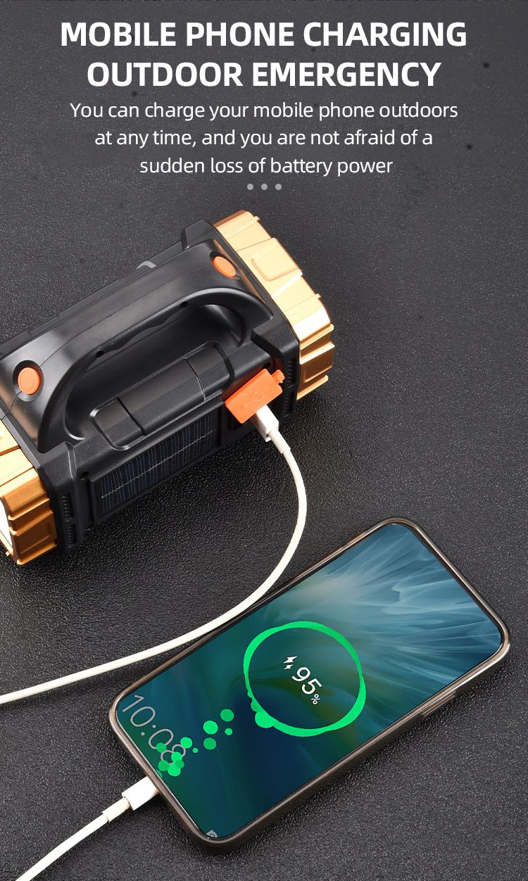 Portable Powerful Solar LED Flashlight With COB Work Lights USB Rechargeable Handheld 4 Lighting Modes Outdoor Solar Torch Light