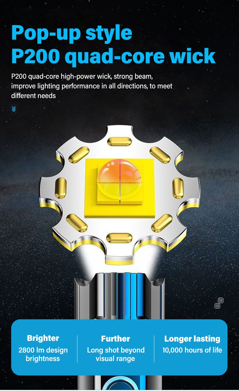 Equipped with a powerful light source, this flashlight delivers super - bright lighting. The mechanical zoom feature lets you adjust the beam from a wide - angle floodlight for broad area coverage (perfect for camping sites or fishing spots) to a focused long - range beam (ideal for spotting distant objects during outdoor adventures).��