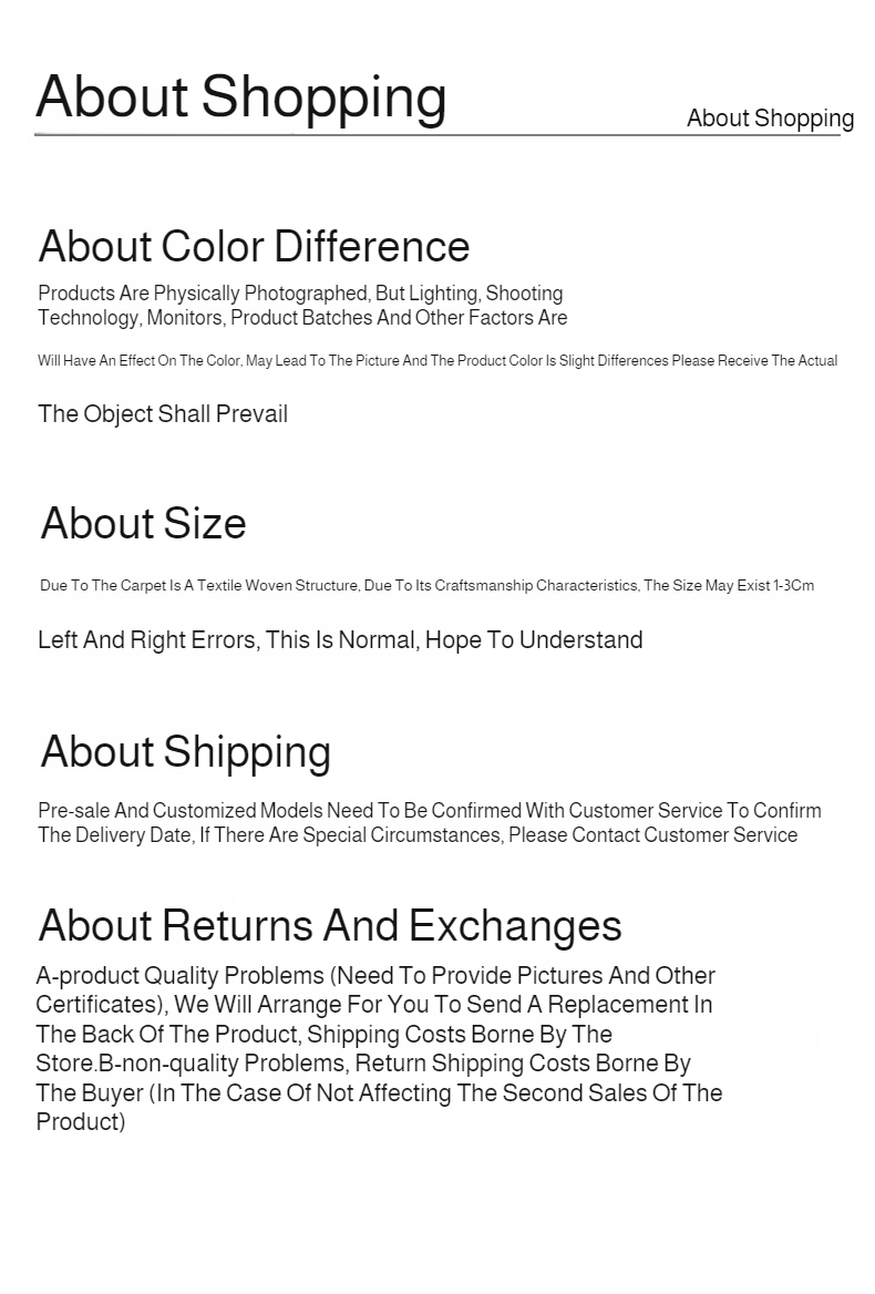 A - For product quality issues (photos and other supporting documentation are required), we will arrange a reshipment at our expense. B - For non-quality issues, the return and exchange shipping costs are the buyer's responsibility (provided the product does not affect resale).