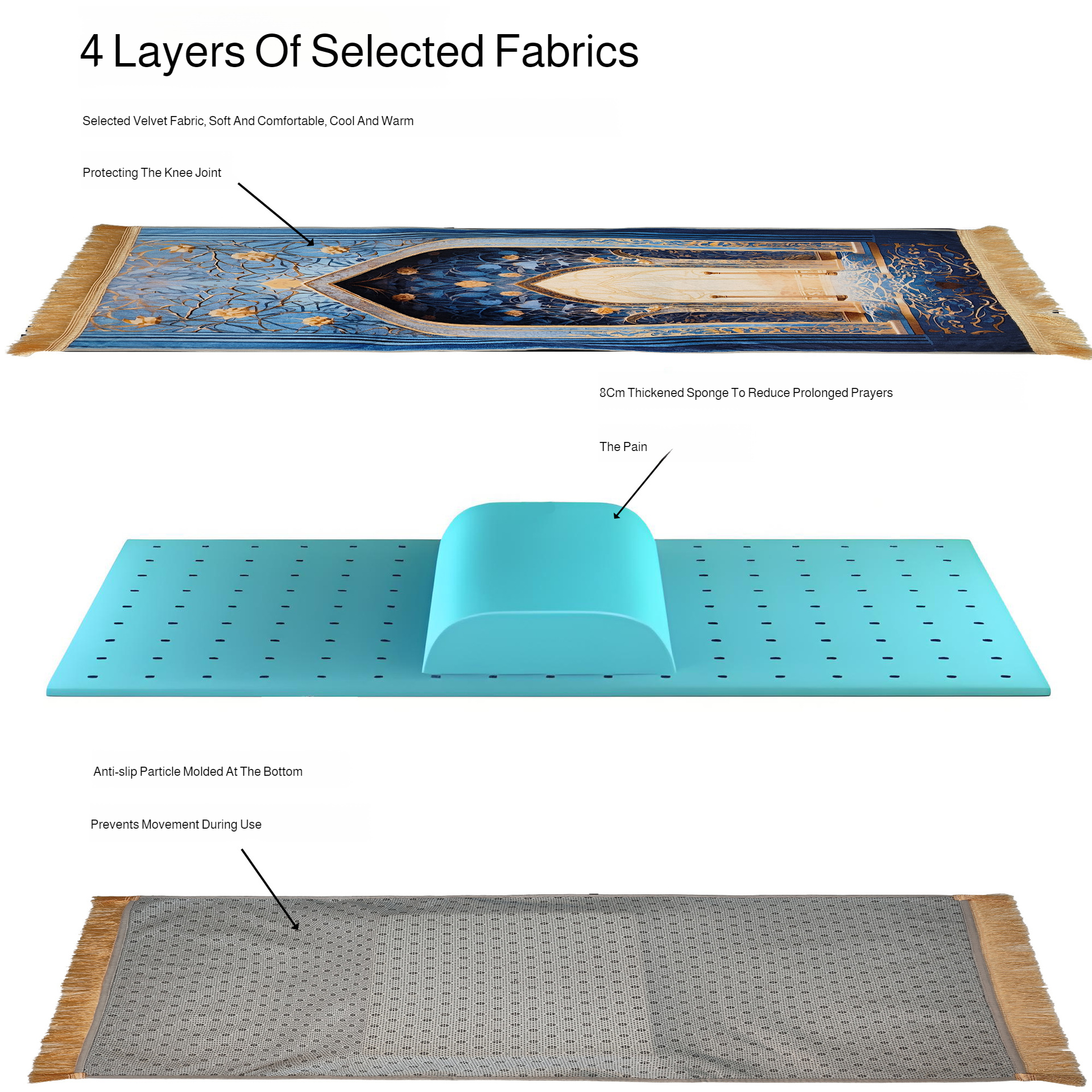 Thickened prayer rug designed for knee comfort: Velvet printed cushion