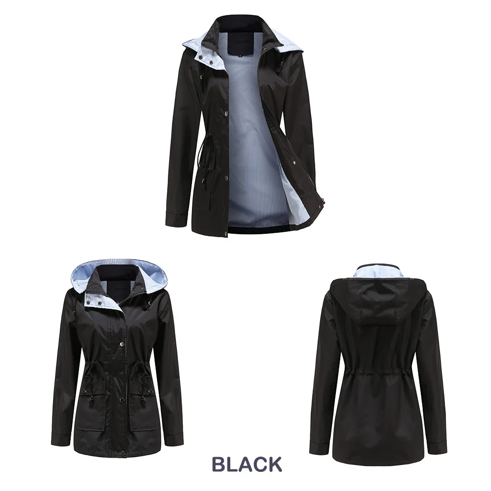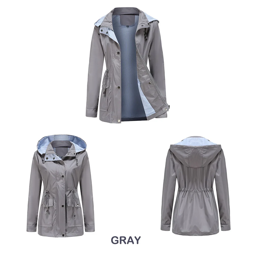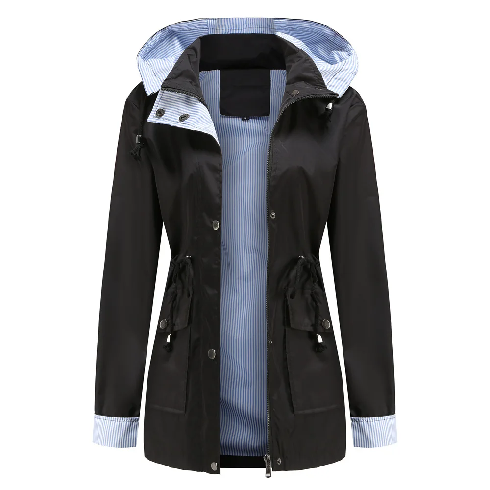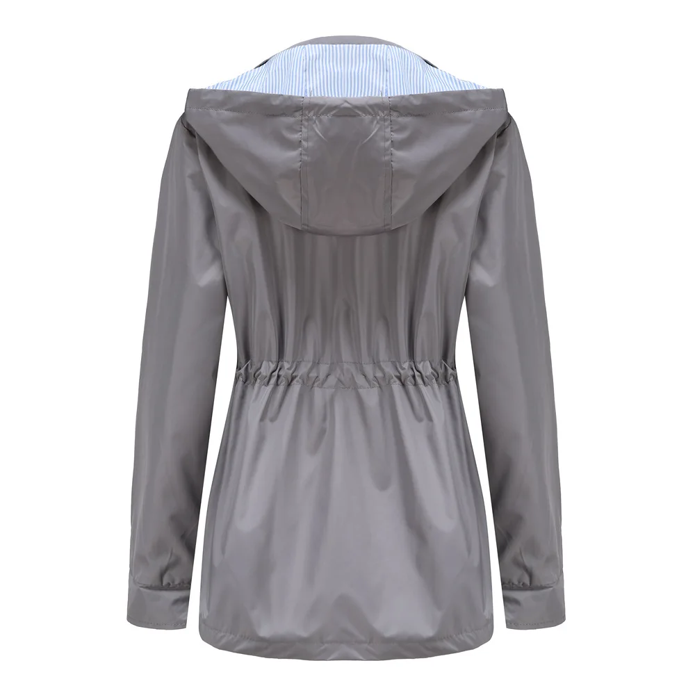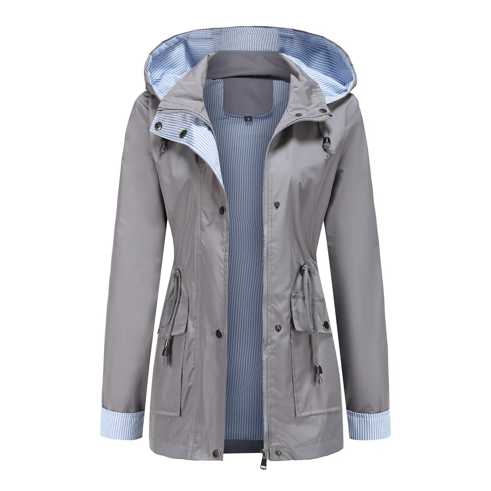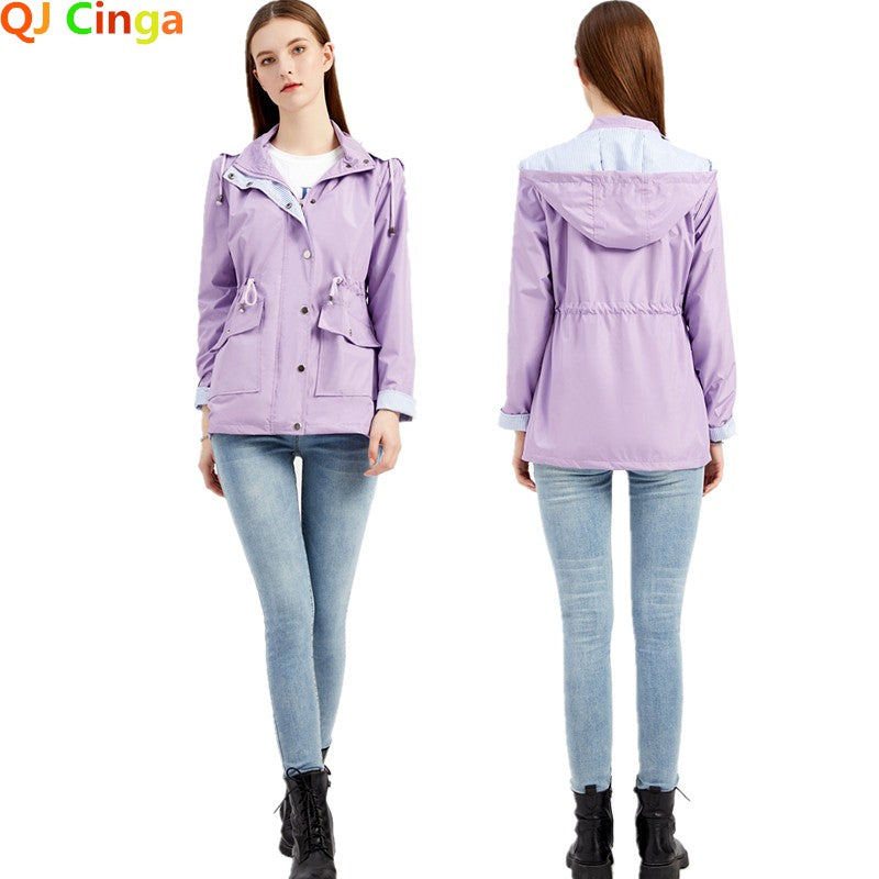 Purple Hooded Jacket for Spring 2025 Women's Office Fashion Women Outerwear Hat with Removable Waist Drawstring Water Proof