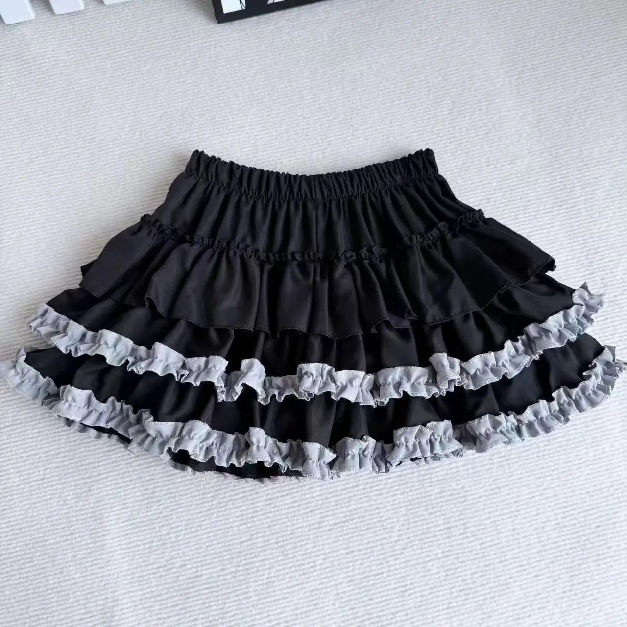 Purple Pumpkin Cake Skirt Women Y2k Short Fluffy White Lace Mini Skirts Girl's Sweet Lolita Pink A Line Pleated Skirts For Women