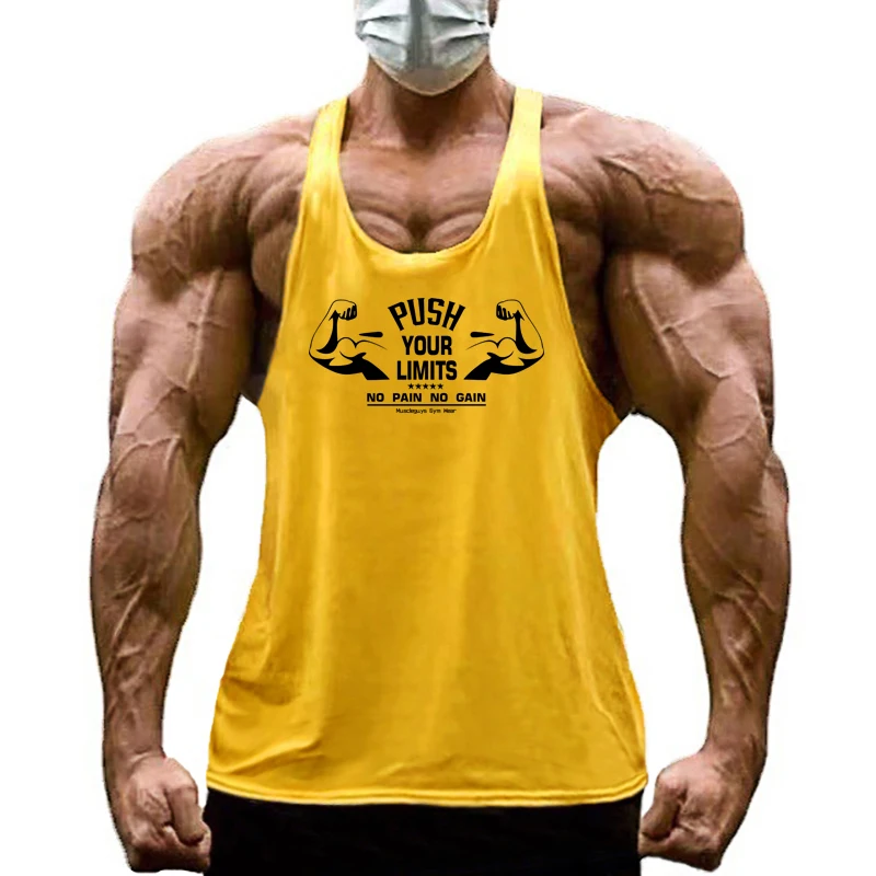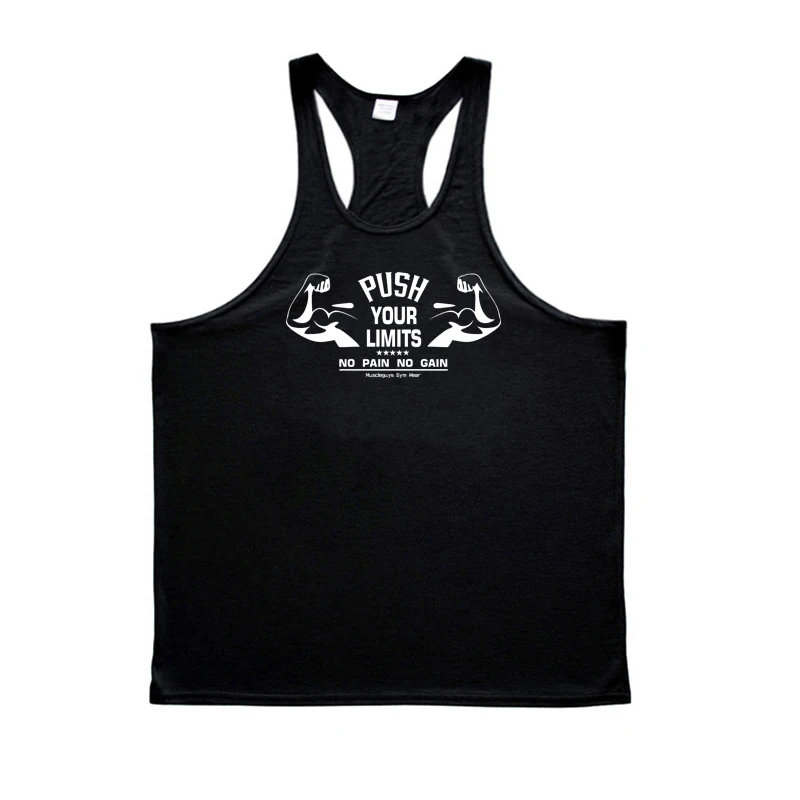 PUSH YOUR LIMITS NO PAIN NO GAIN Cotton Gym Tank Top Mens Bodybuilding Clothing Y Back Fitness Stringer Singlets Workout Shirt