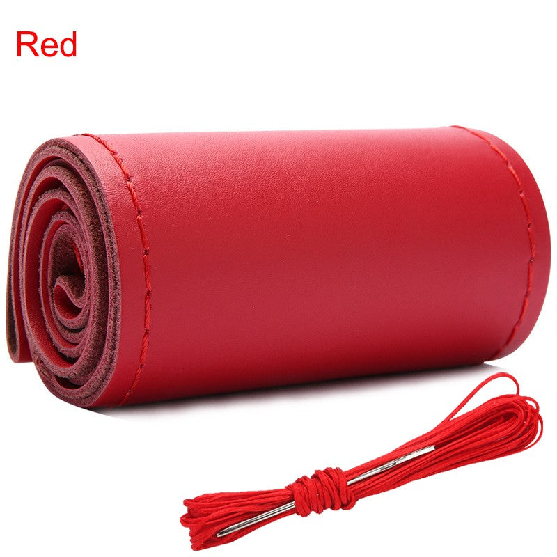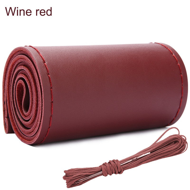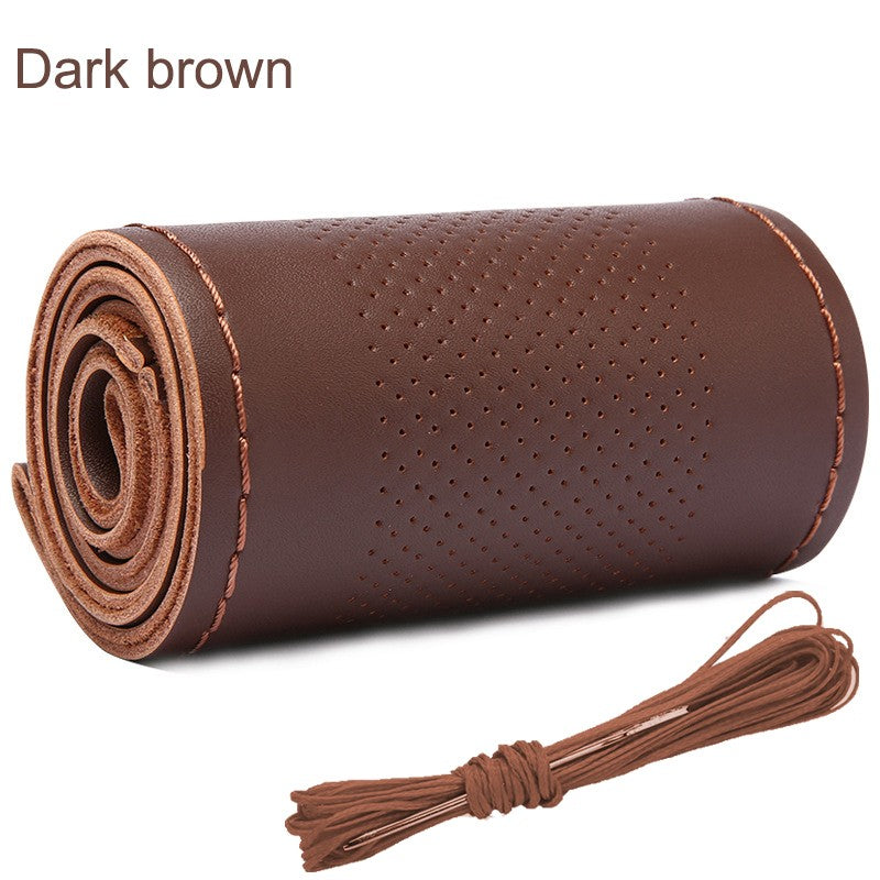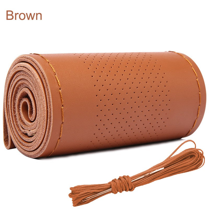 Real Cowhide Hand Stitched Steering Wheel Cover Four Seasons Universal Car Accessories Car Anti-Slip Leather Protective Cover