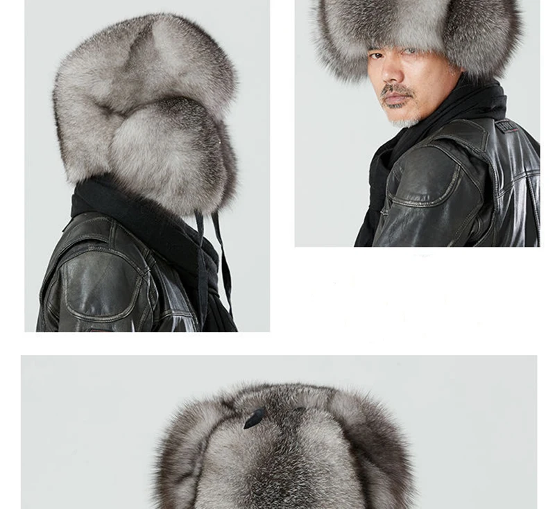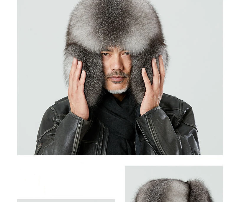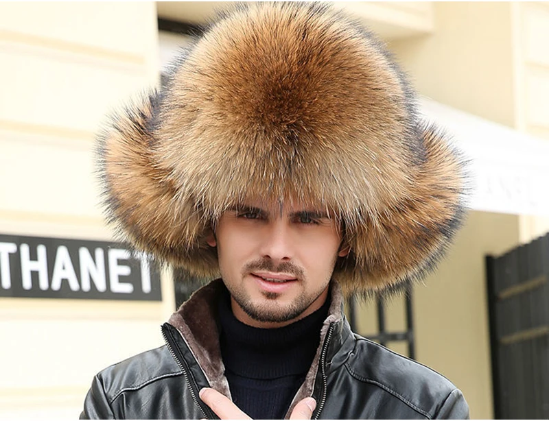 Real Fur 100% Fox Skin Russian Businessmen Pilot Bombers Full Mao Men's hat Ushanka Winter Ear Guard Hat Raccoon Fur Beanie hat
