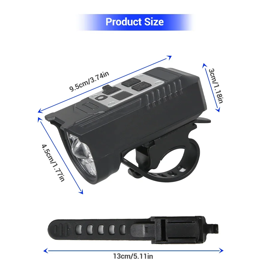 4. Efficient Charging: With a charging time of just 3 hours and 20 minutes, and equipped with a large 1800mAh battery, this bike front light provides long-lasting use, ideal for long-distance cycling.