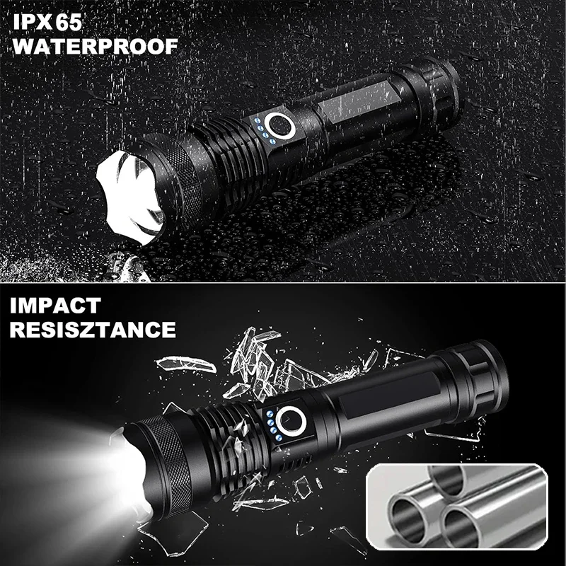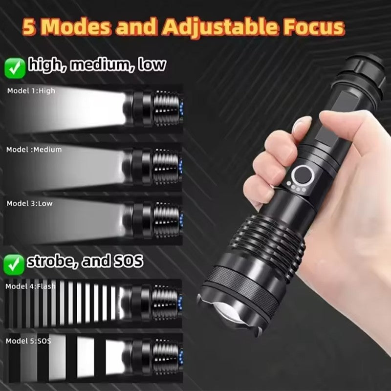 Rechargeable LED Flashlight High Power Zoomable Aluminum Alloy Portable Flashlight for Camping Hiking Outdoor Night Search