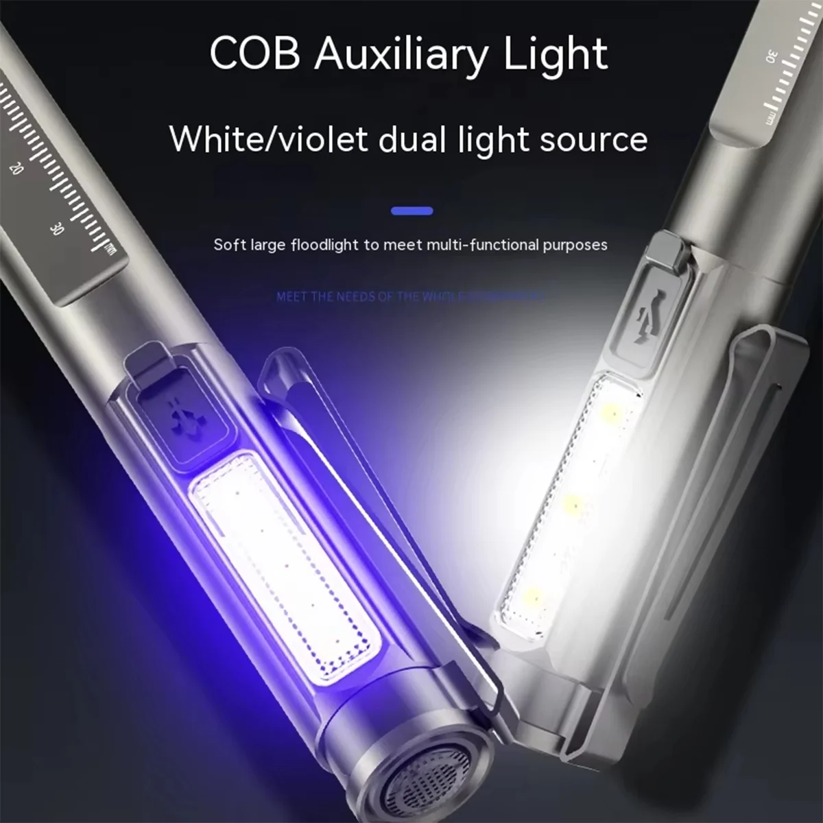 Side light: 3 white-light modes (strong → weak → flashing) + purple light mode.