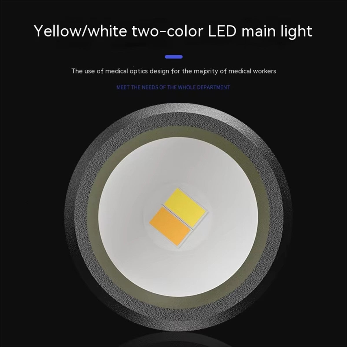 Features a main light with white + yellow LEDs and a side light with white + purple LEDs. Clear white light is ideal for ENT inspection, soft yellow light is suitable for ophthalmology, and purple light supports stain detection and verification without harming the eyes.