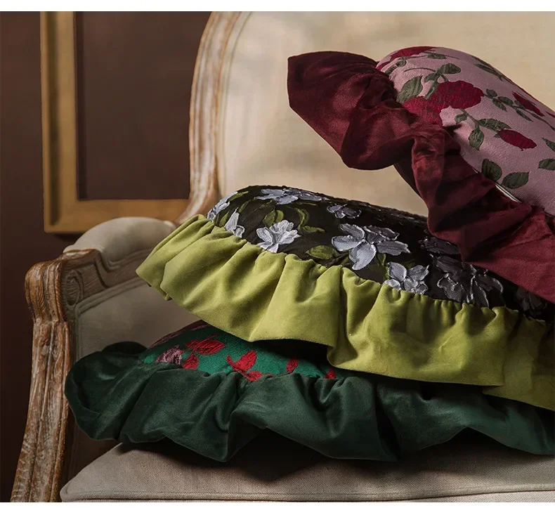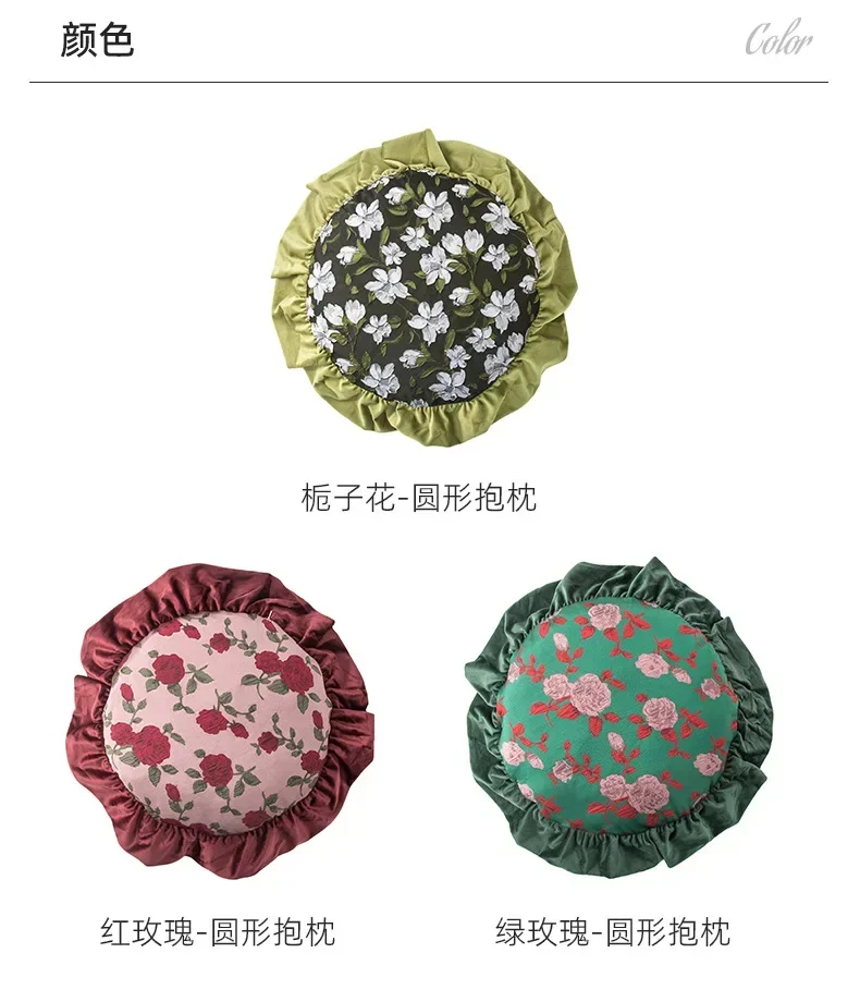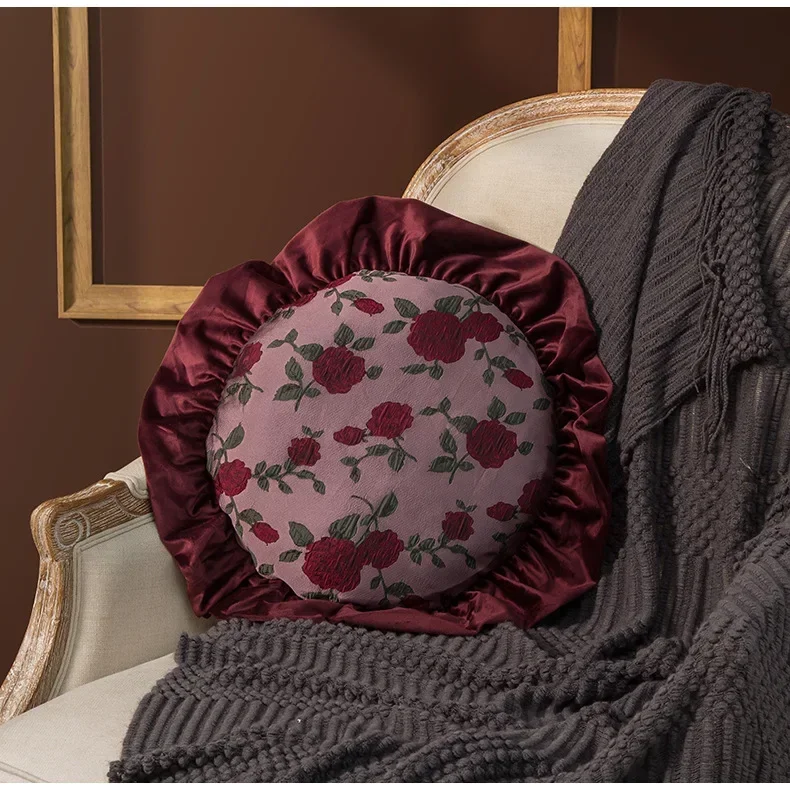 Removable Washable American Light Luxury Sofa Flower Pillow Homestay Round Cushion Retro Ruffle Edge Red Pillow Throw Pillows