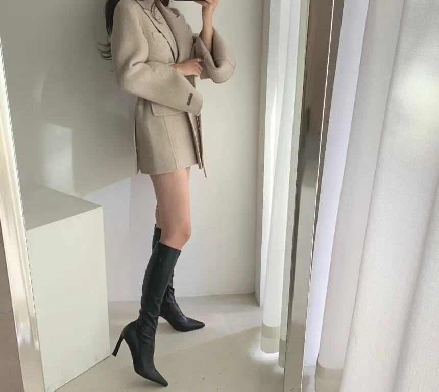 Retro Chic Autumn Winter Woolen Coat One Button Long Sve Suit Collar Waist Cinched Side Slit Warm Knitwear for Women