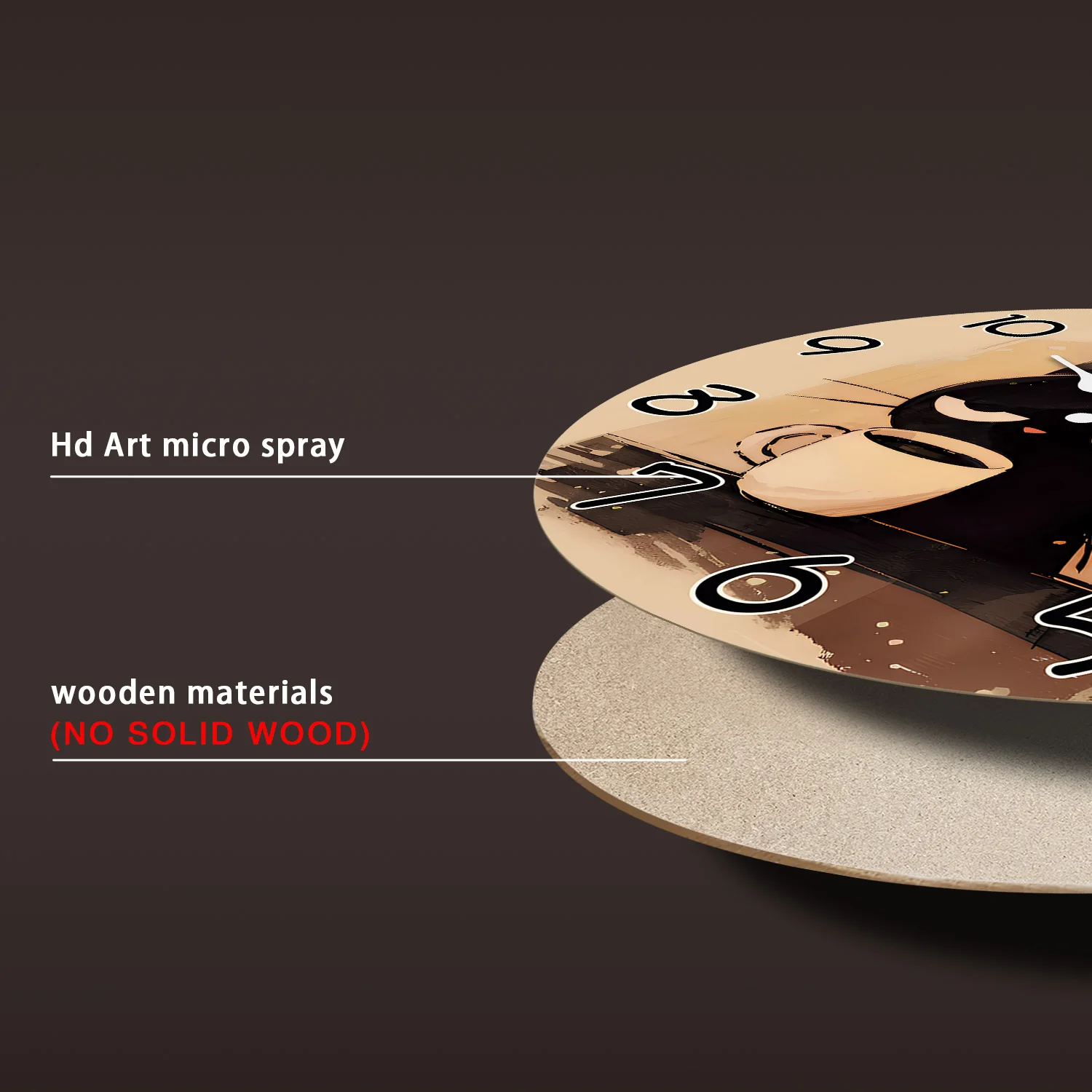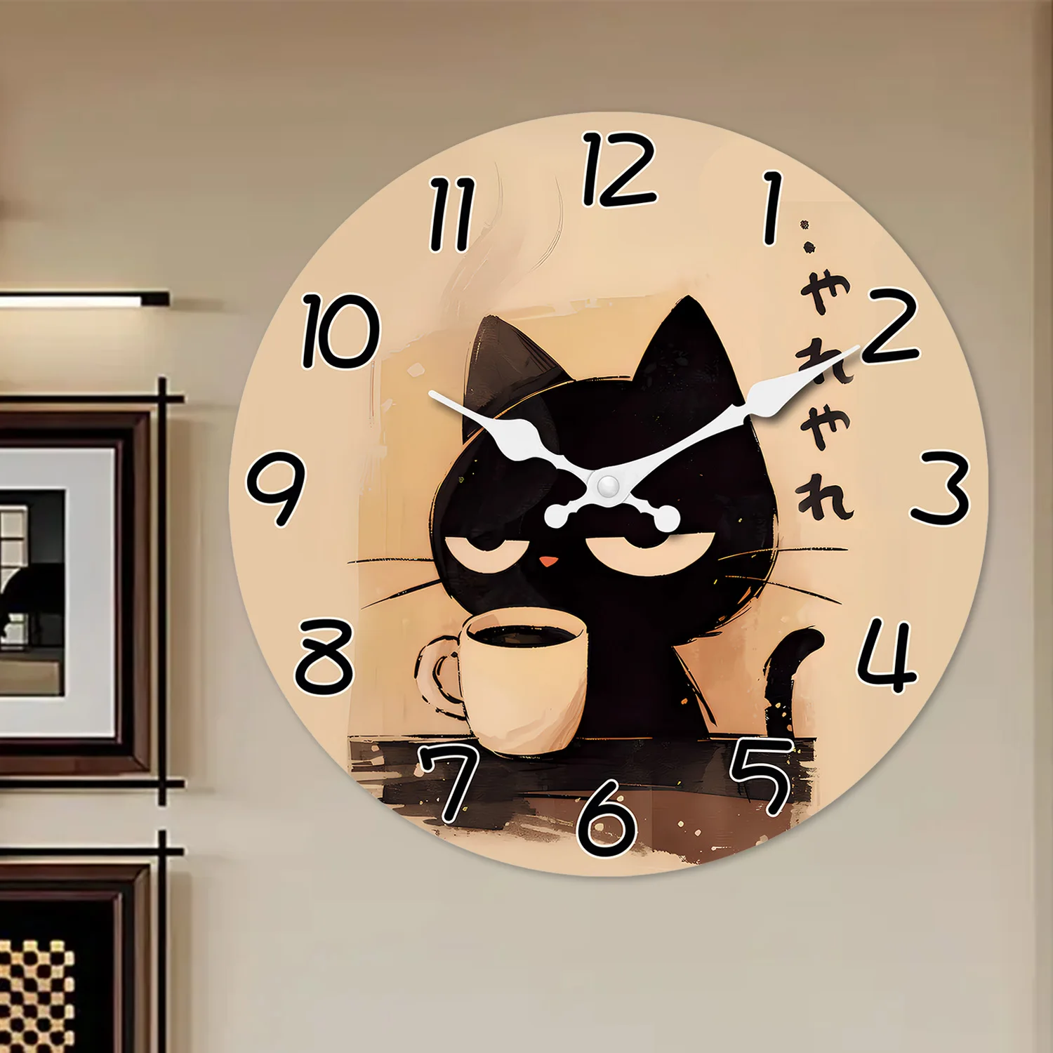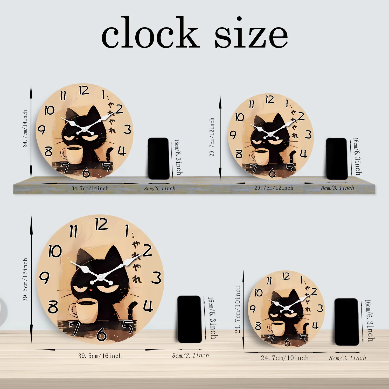 Retro Cute Black Cat Drinking Coffee Pattern Wooden Wall Clock Living Room Bedroom Kitchen Home Decoration Wall Clock Silent Quartz Clock Holiday Gift 10 Inches 12 Inches 14 Inches 16inch (Without Batteries)