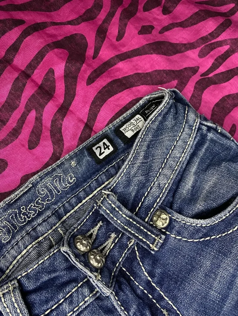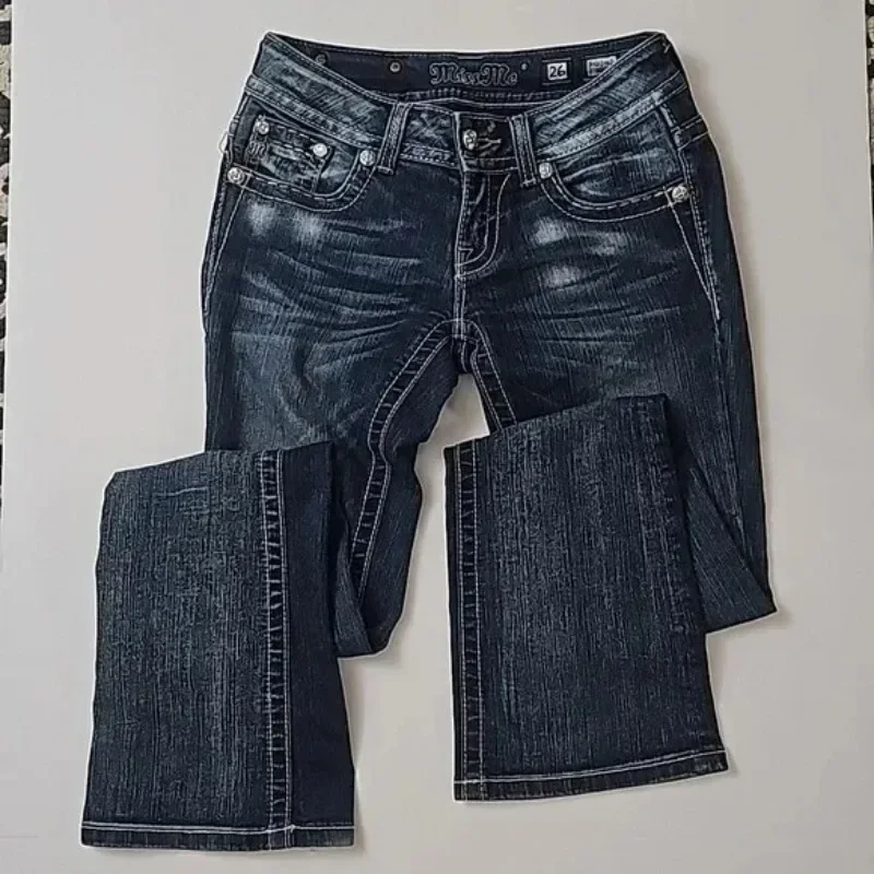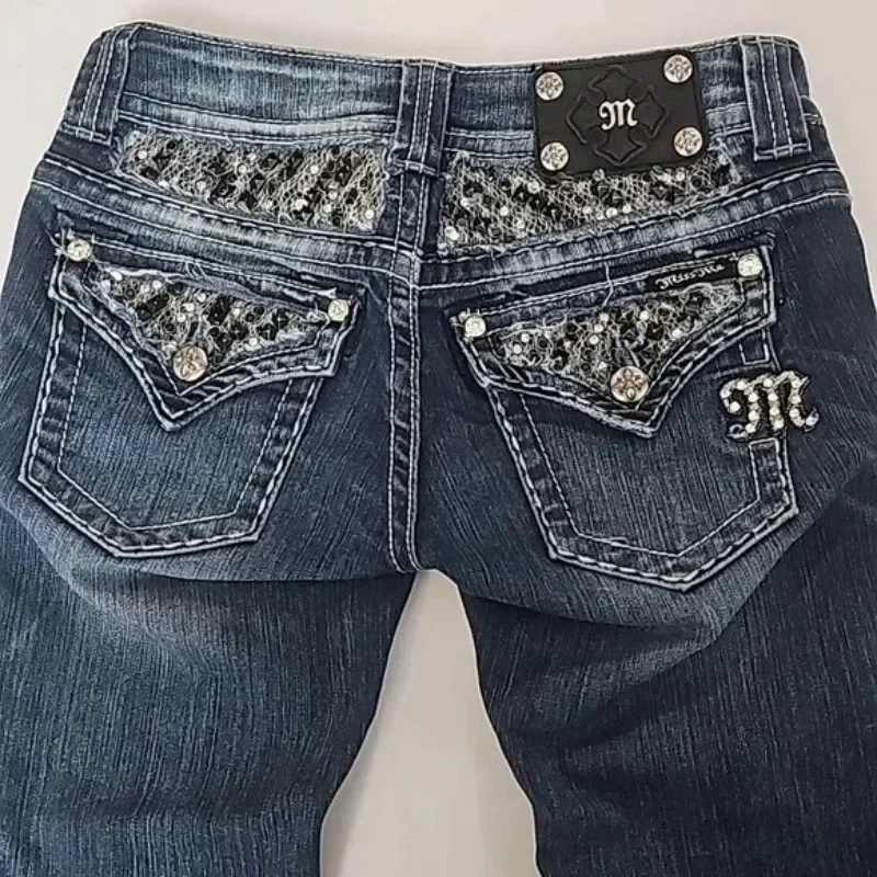 Retro Miss Me Boot Cut Jeans Female Y2K New Blue Jeans Embroidered Wing Pocket Hip Hop Harajuku Gothic Wide Pants Street Wear