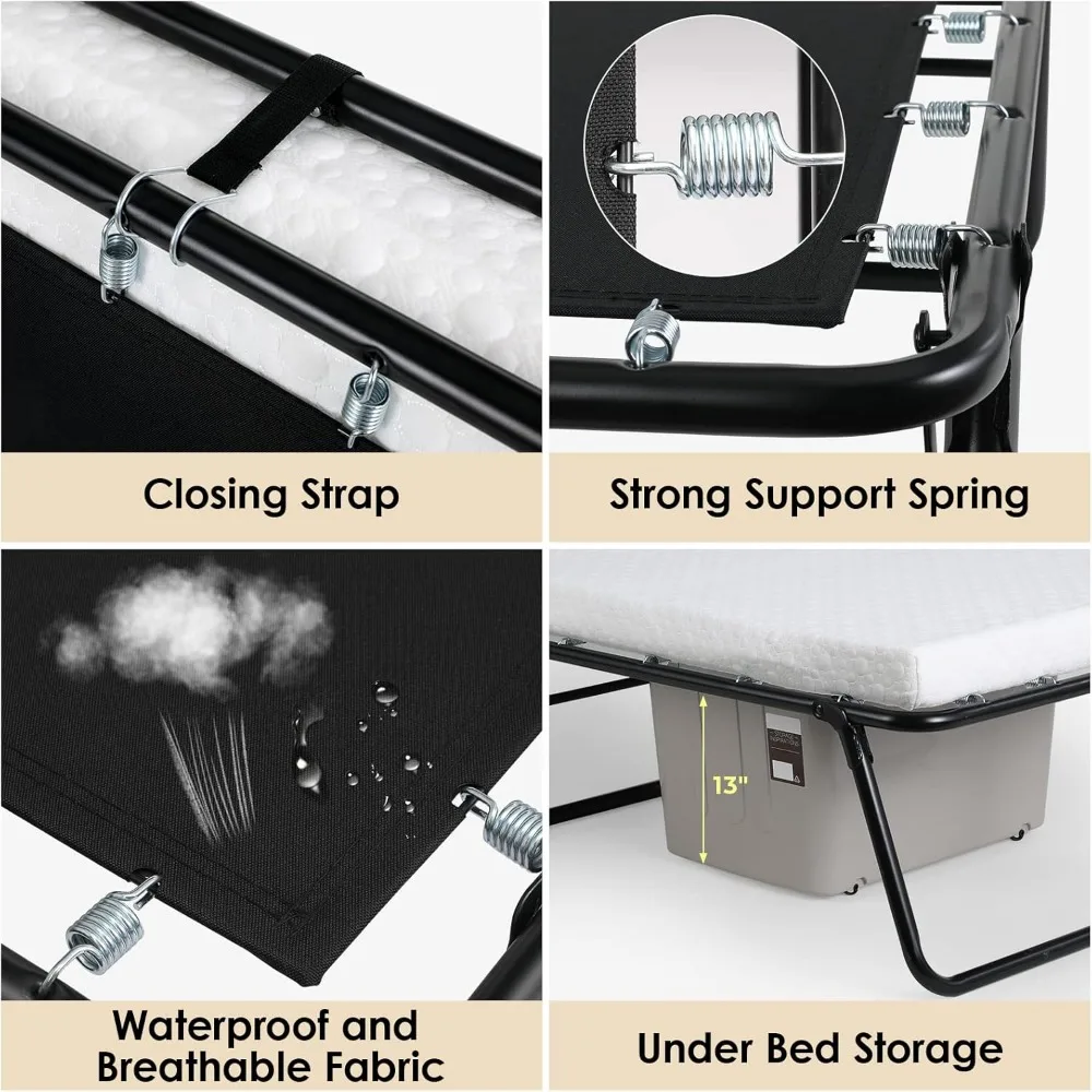 Rollaway Bed with Mattress for Adults,Foldable Bed,Portable Bed,Metal Bed Frame with Memory Foam Mattress, Guest Bed for Bedroom