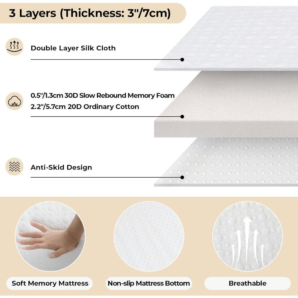 • Memory Foam Mattress: Folding bed with mattress for adults comes with a 3-inch premium comfortable memory foam mattress. The rollaway bed with mattress will definitely bring you or your guest a comfortable sleep experience.