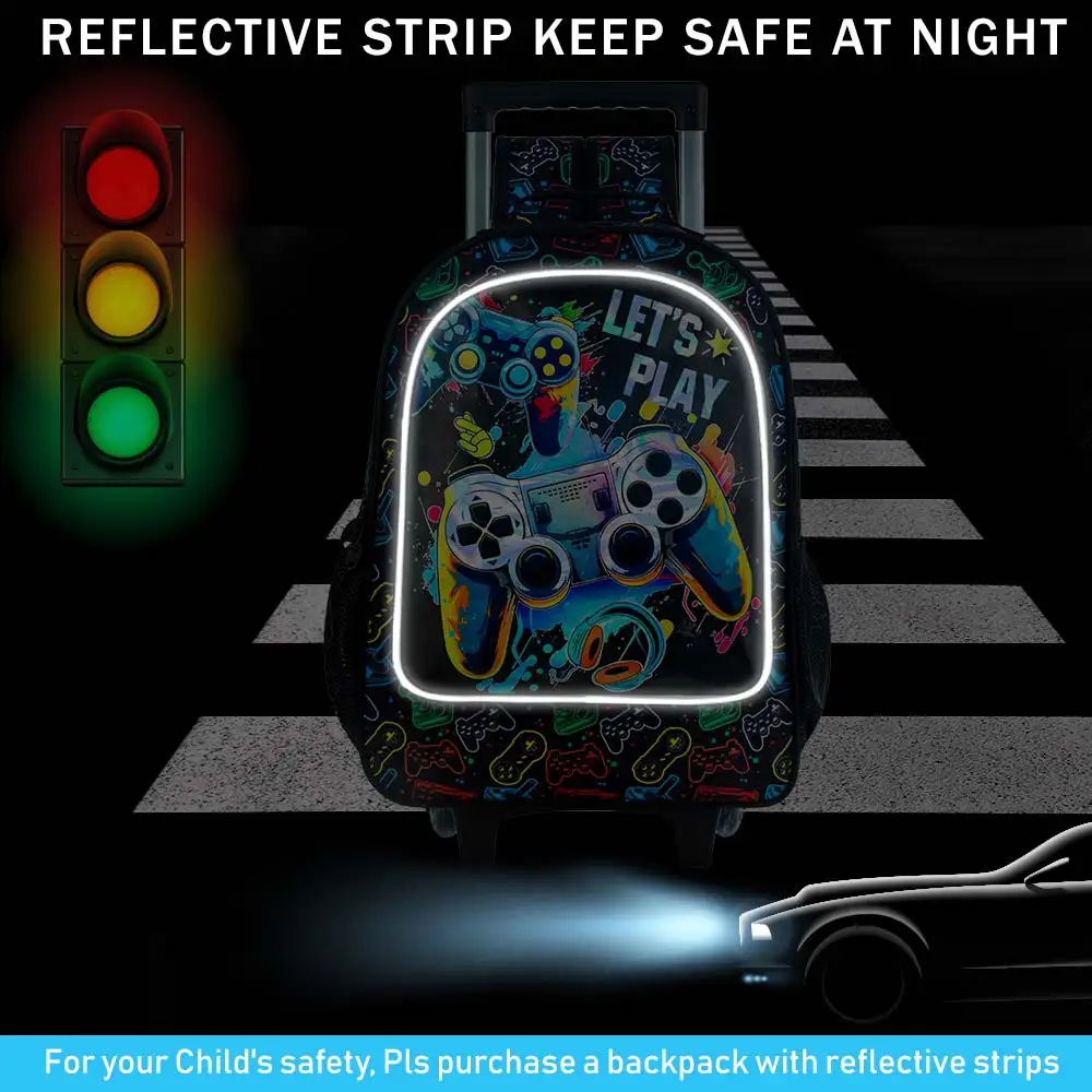 Cool Boy Rolling Bookbag: A kids rolling backpack that will make your boy scream, new uv printing brings a colorful game console vision, which fascinates and makes the boy venture out to explore.