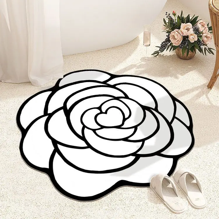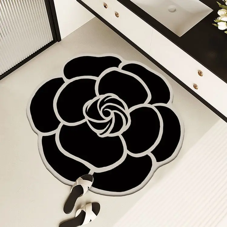 Round Camellia Crystal Velvet Floor Mat Living Room Bathroom Door Absorbent Quick-Drying Floor Rugs Household Non-slip Carpet