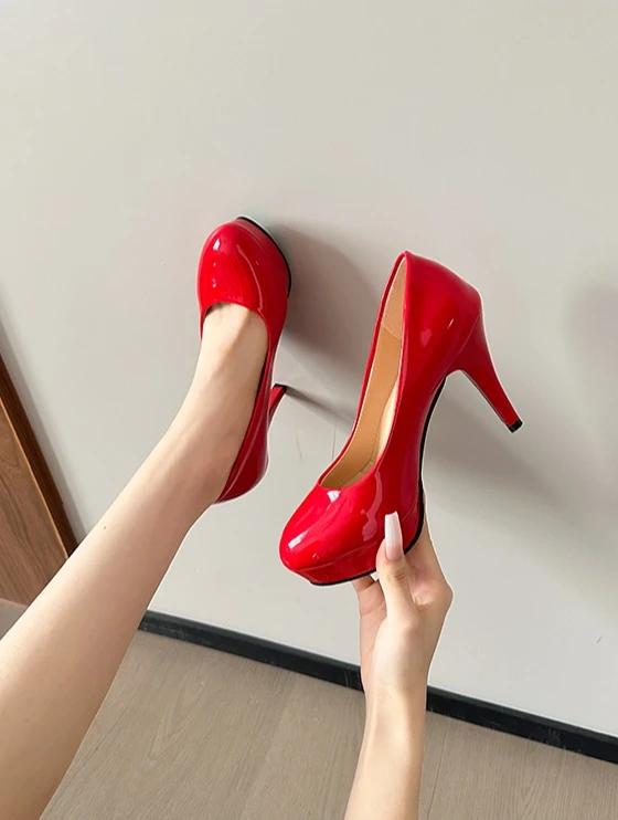 Round Head High Heels Women's Thin Heels Light Mouth Shoes