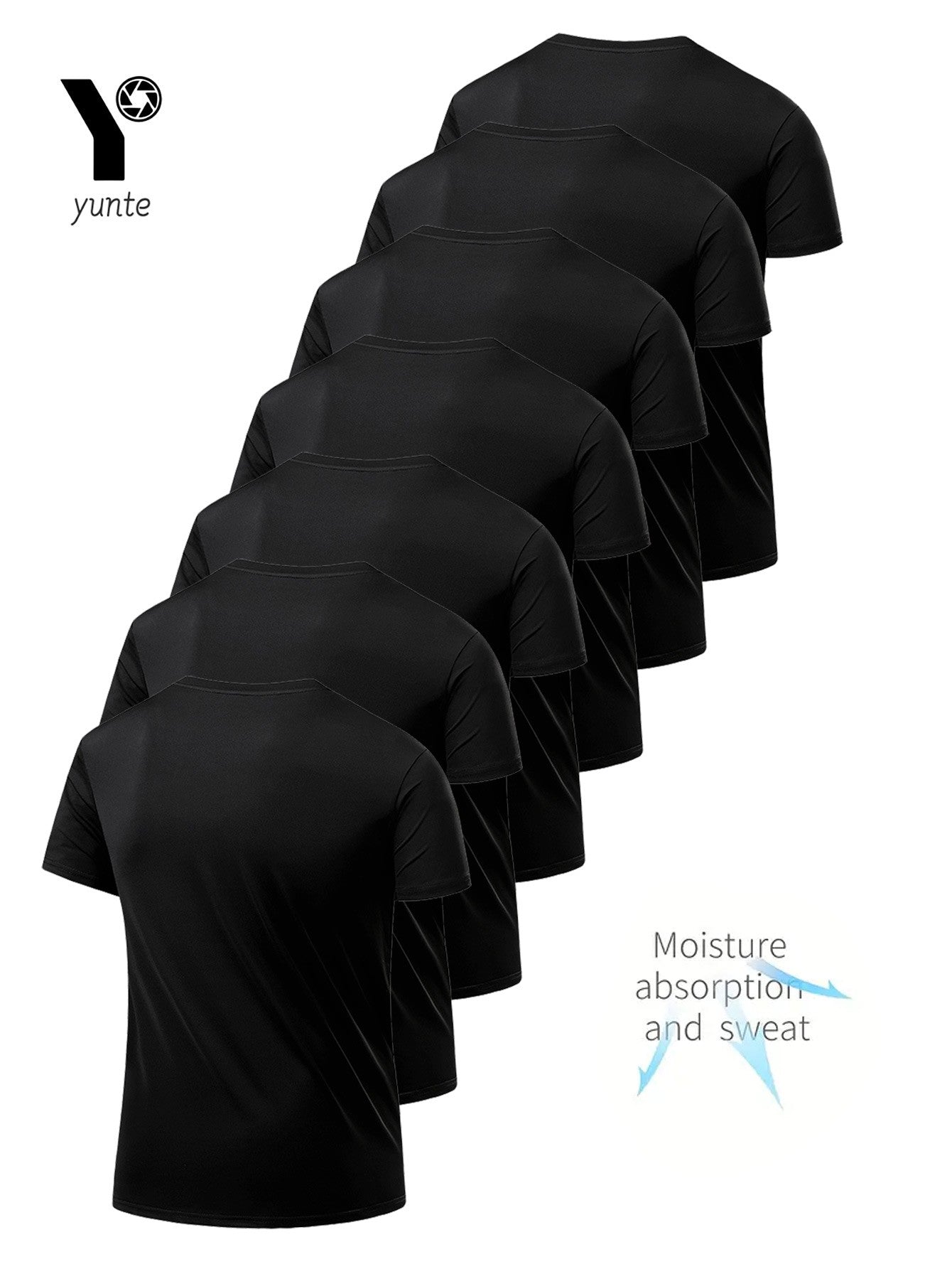 Round Neck T-Shirt 7-Piece Black Ultra-Light Men's Quick-Drying Breathable Sweat-Absorbent Shirt Suitable for Fitness Gym and Ru