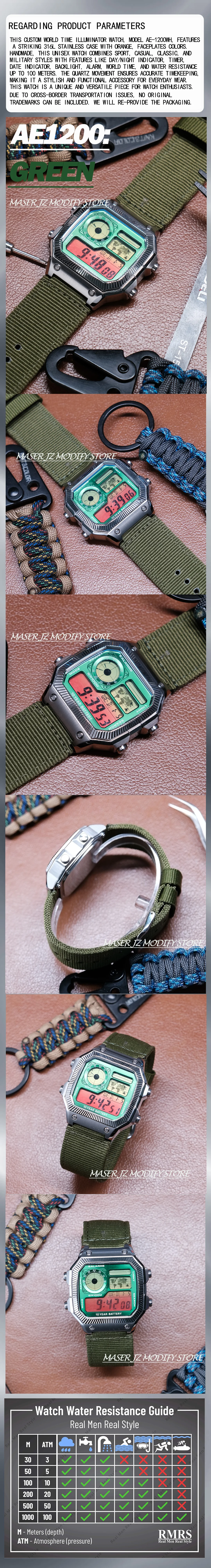 Royale Watch Mod Kit Watch AE-1200WHD-1AVDF Unique Customized Digital Military Watch Waterproof Movement Parts