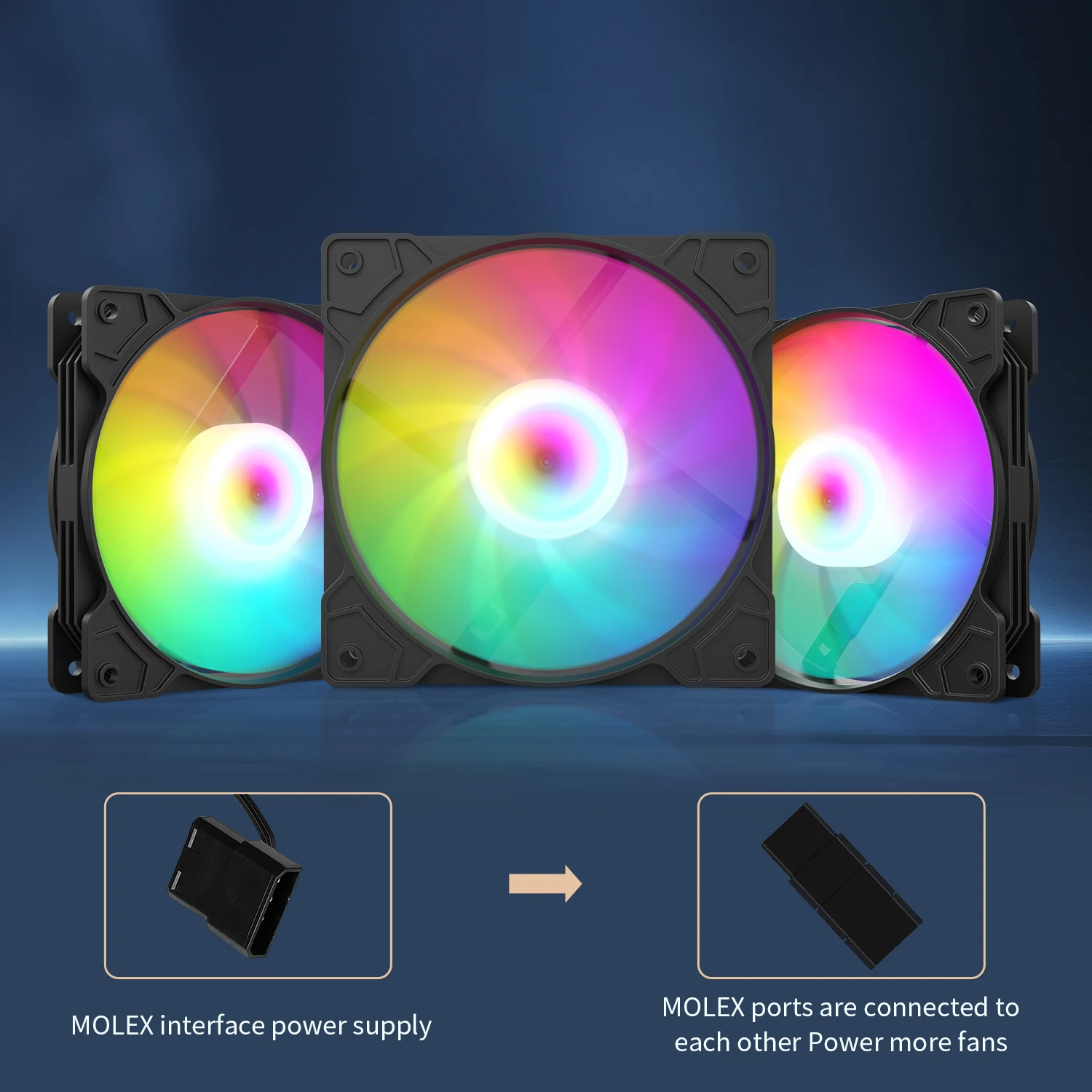 Ruix Casing Fans RX-134 PC Case Fan 120mm Gabinete Fans Fixed RGB Gaming 12V Molex Computer Gamer Cooling Ventilador