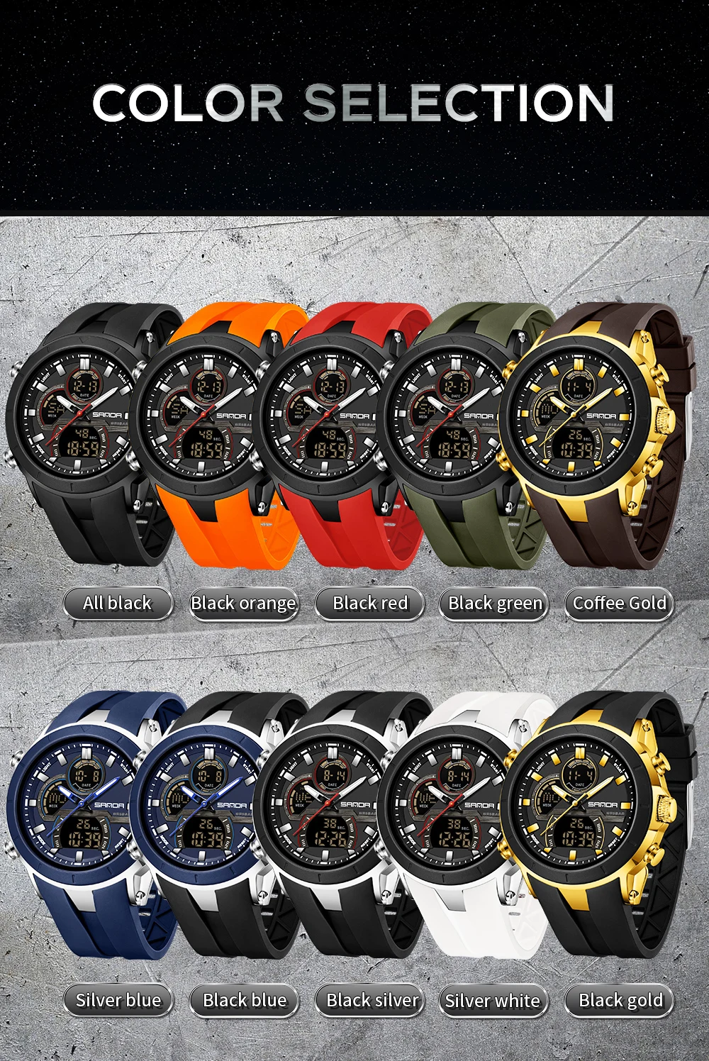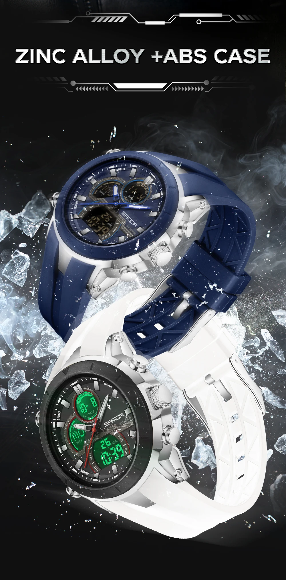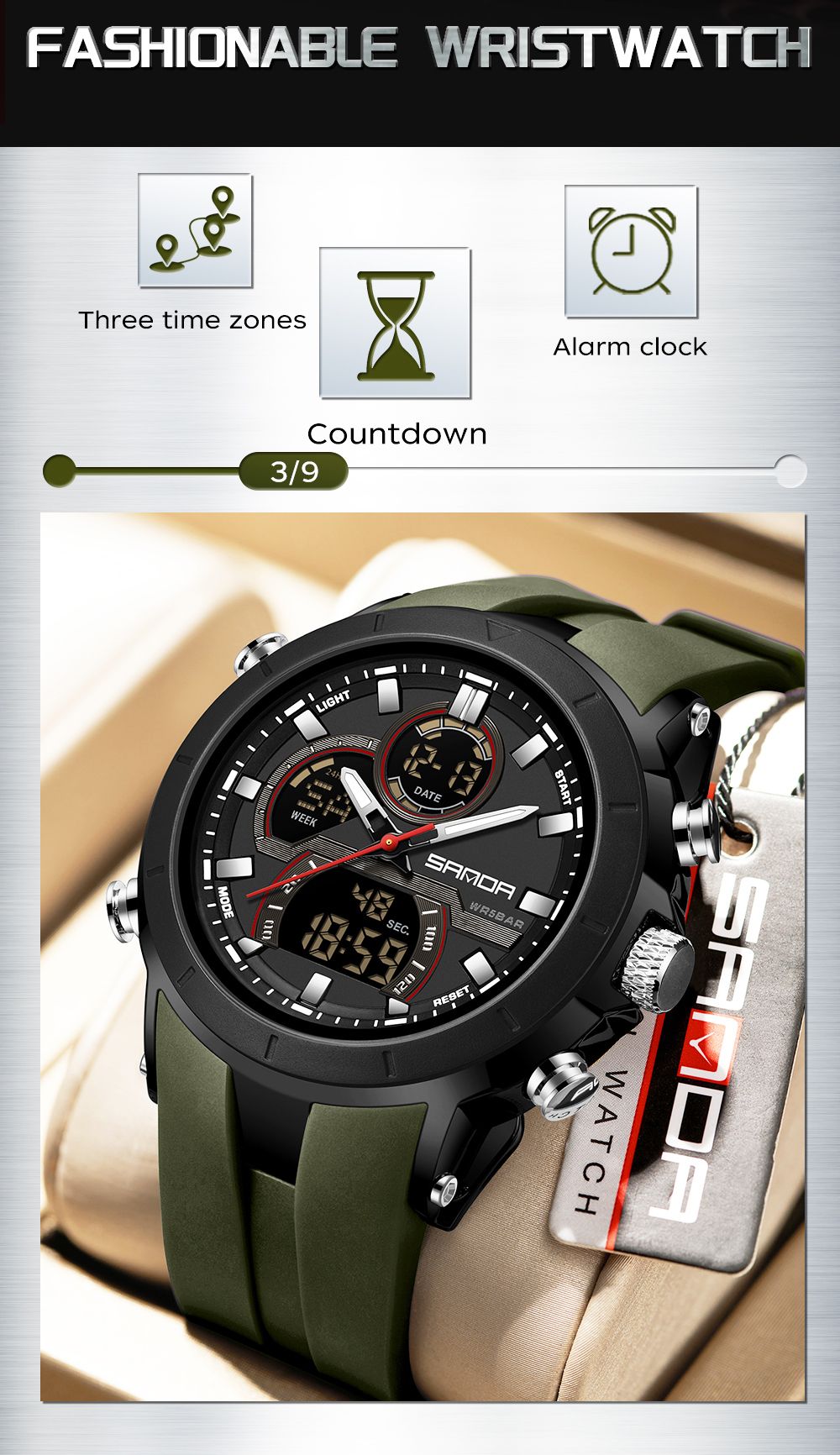 SANDA Mens Watches Countdown Waterproof Alarm Clock Wristwatch Multifunctional Luminous Men Quartz Digital Watch Alarm Clock
