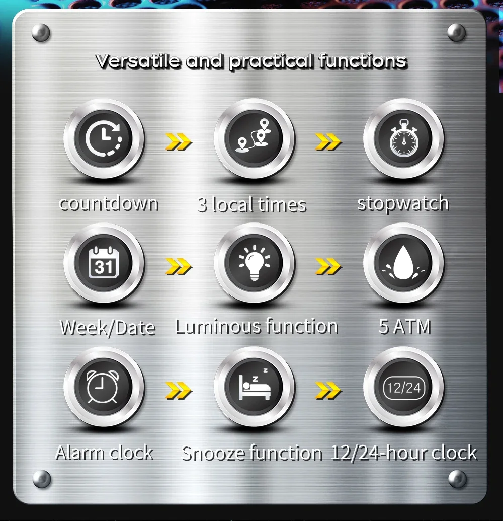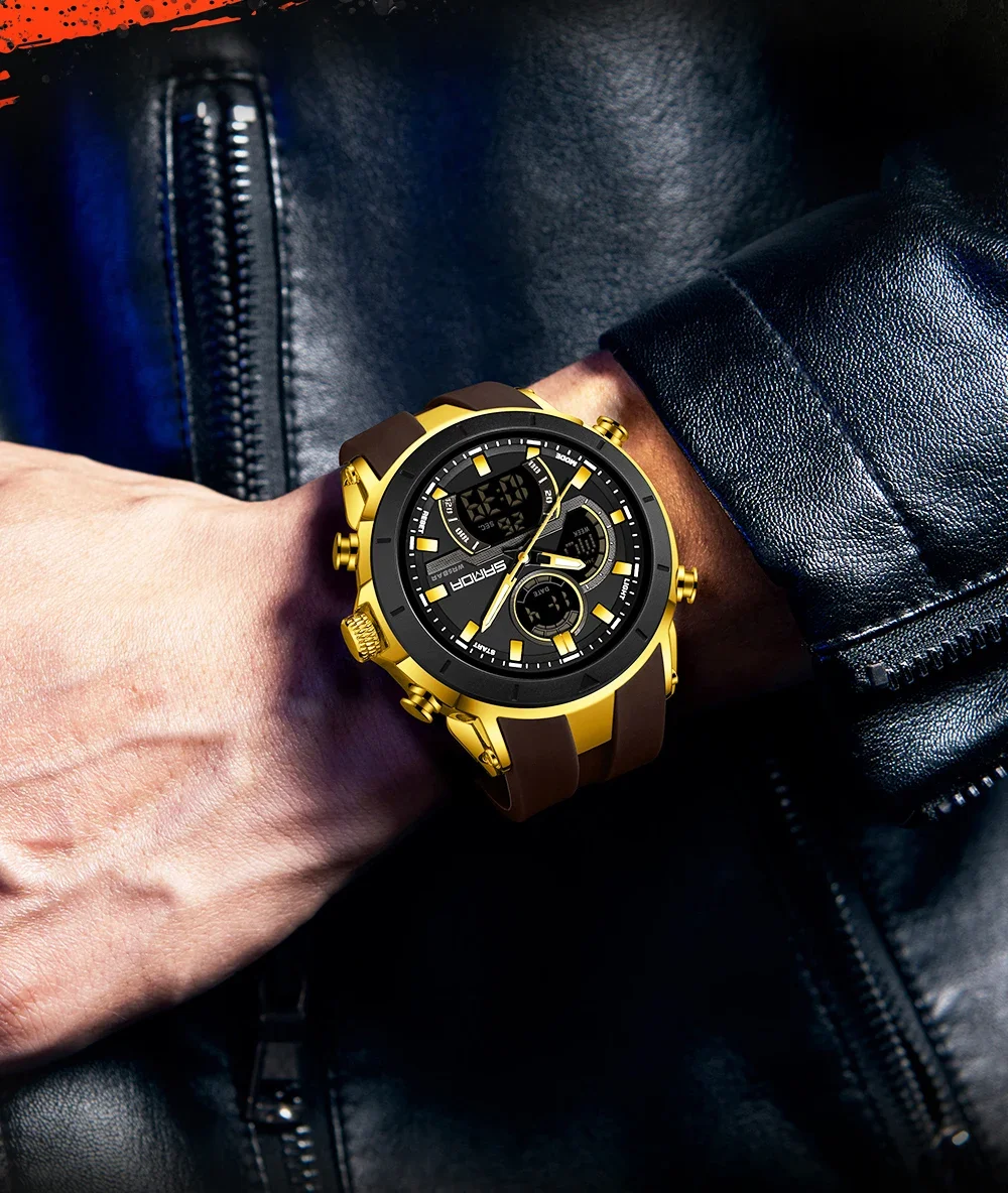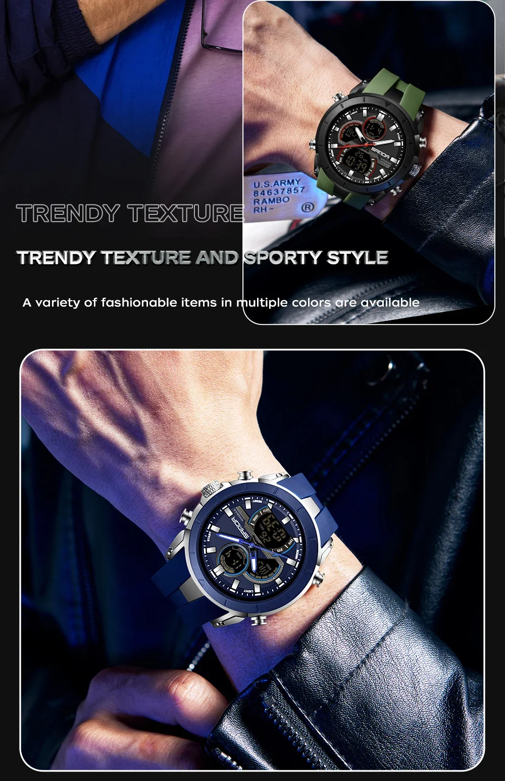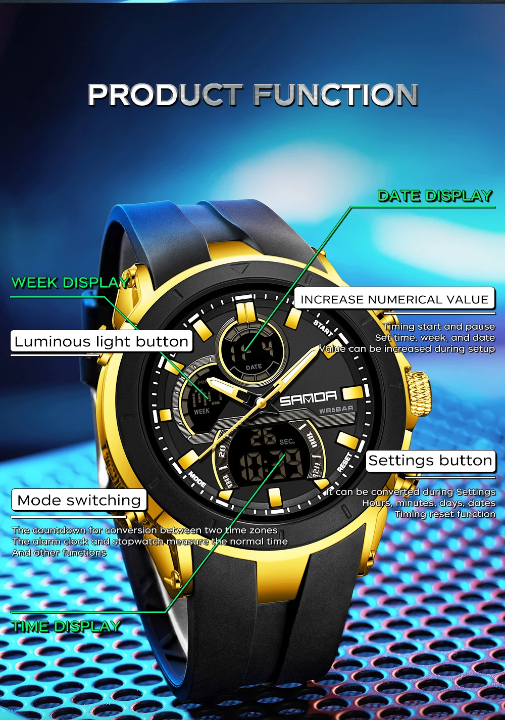 SANDA Mens Watches Countdown Waterproof Alarm Clock Wristwatch Multifunctional Luminous Men Quartz Digital Watch Alarm Clock