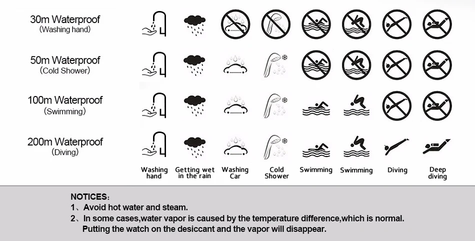 Note: we suggest you not wear it when swim .but if you go to swim or dive , pls don't press any button underwater!