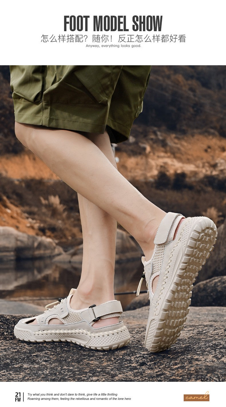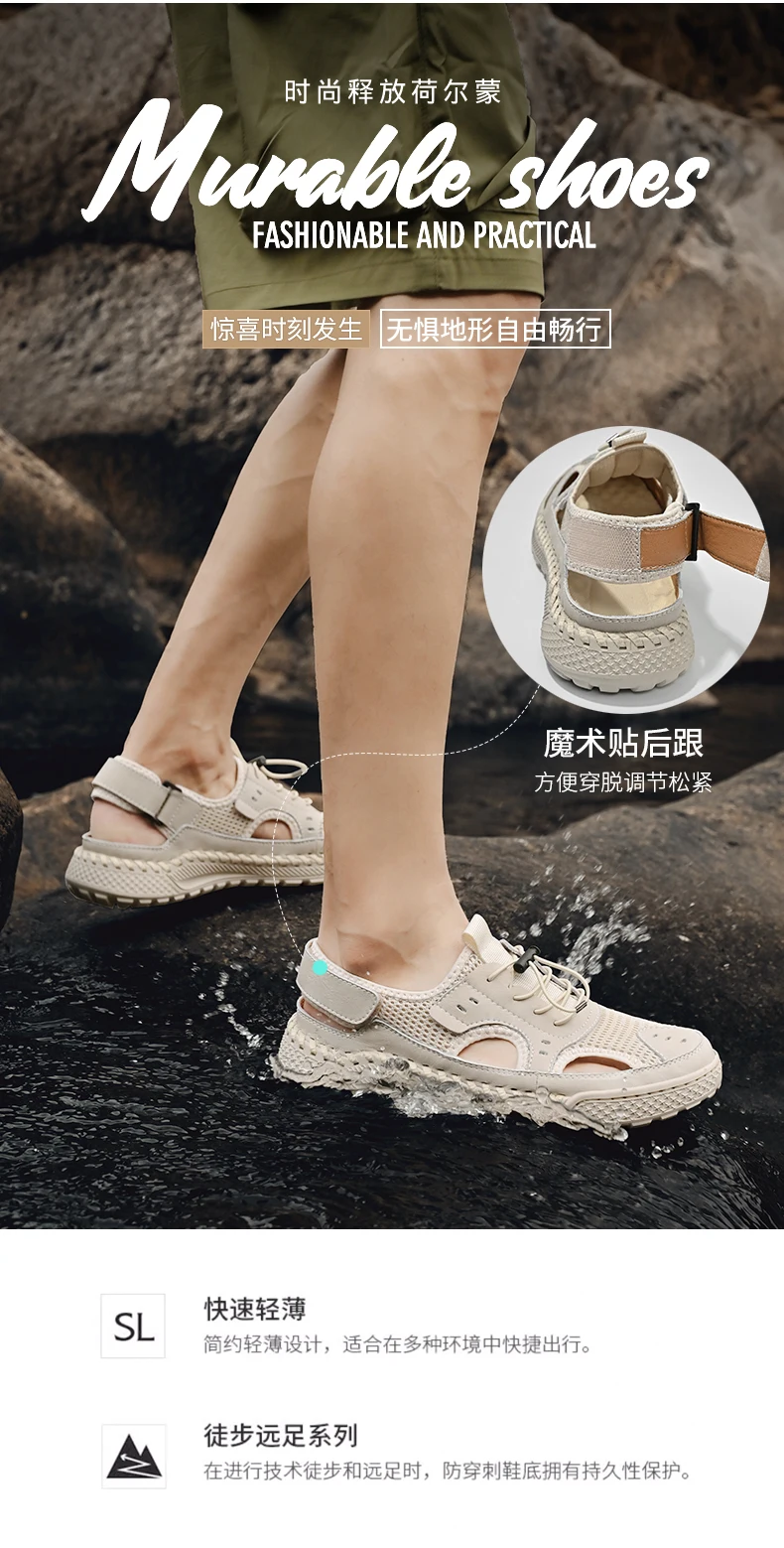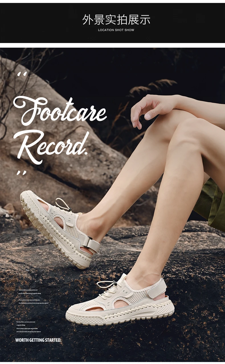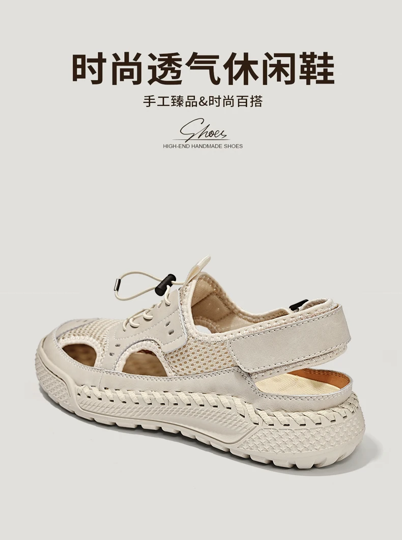 Sandals men's tide summer new style leather toe cap outdoor leisure sports hollow sandals beach shoes Handmade mesh men shoes