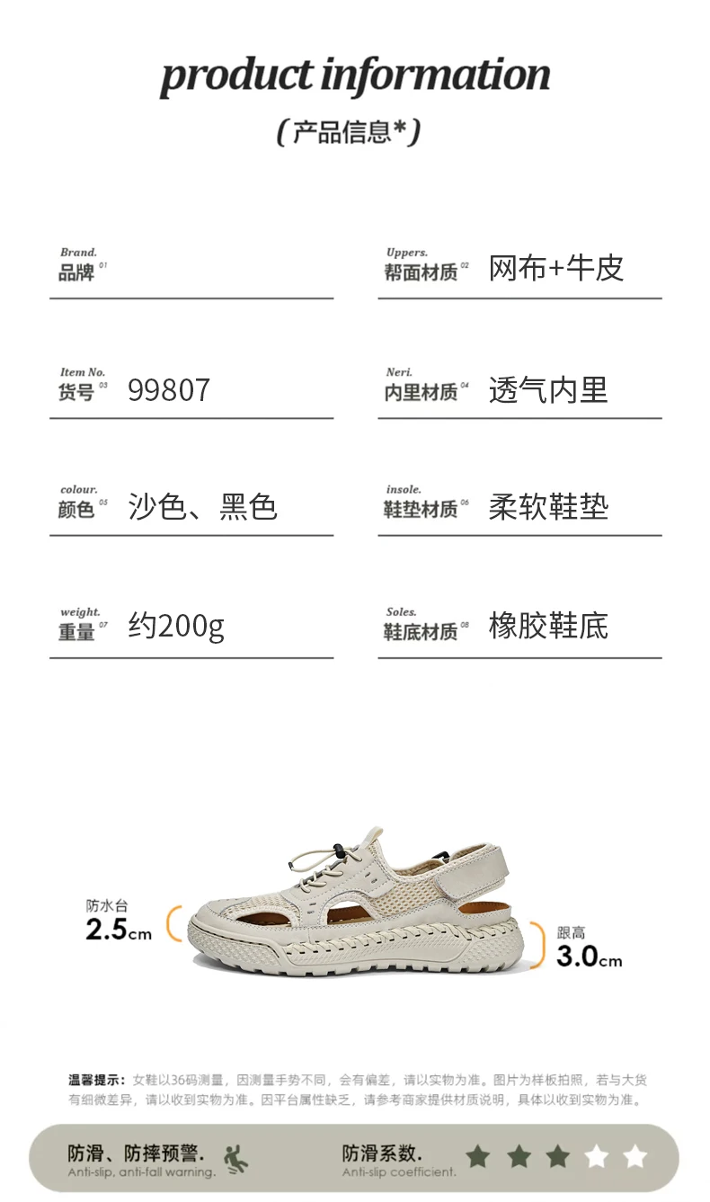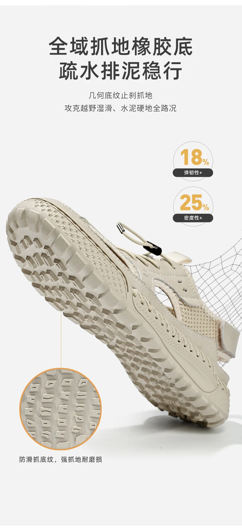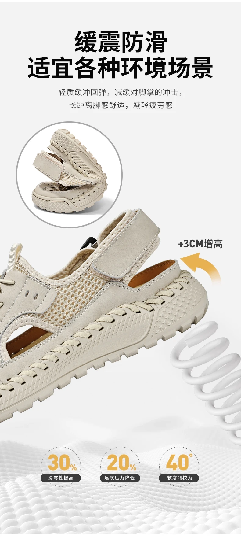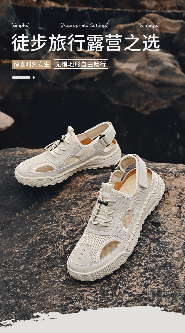 Sandals men's tide summer new style leather toe cap outdoor leisure sports hollow sandals beach shoes Handmade mesh men shoes