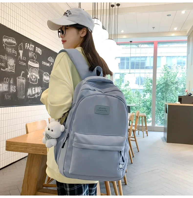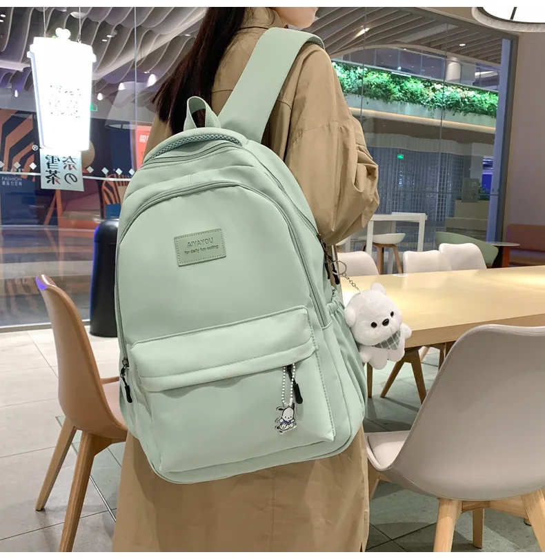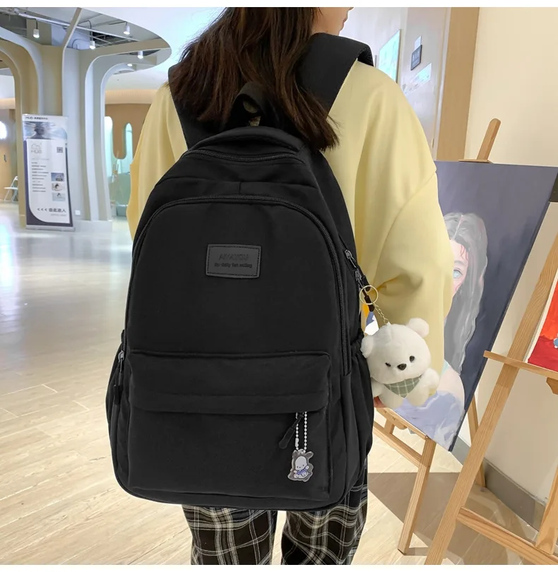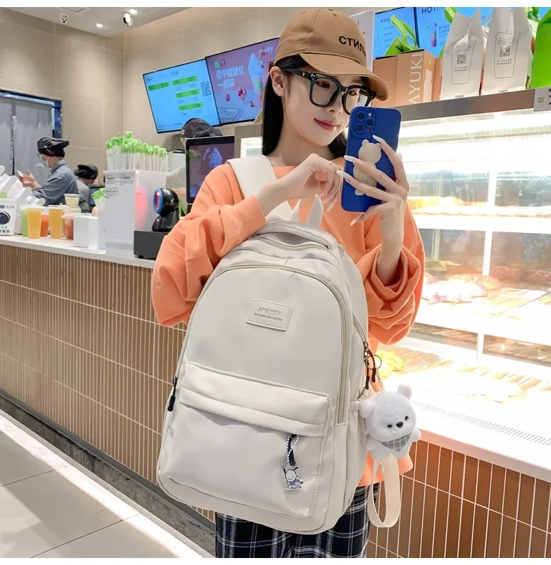 Schoolbags Student Japanese And Versatile Backpack Unisex Large-Capacity Backpack Girl Simple Polyester Material Doll Decoration