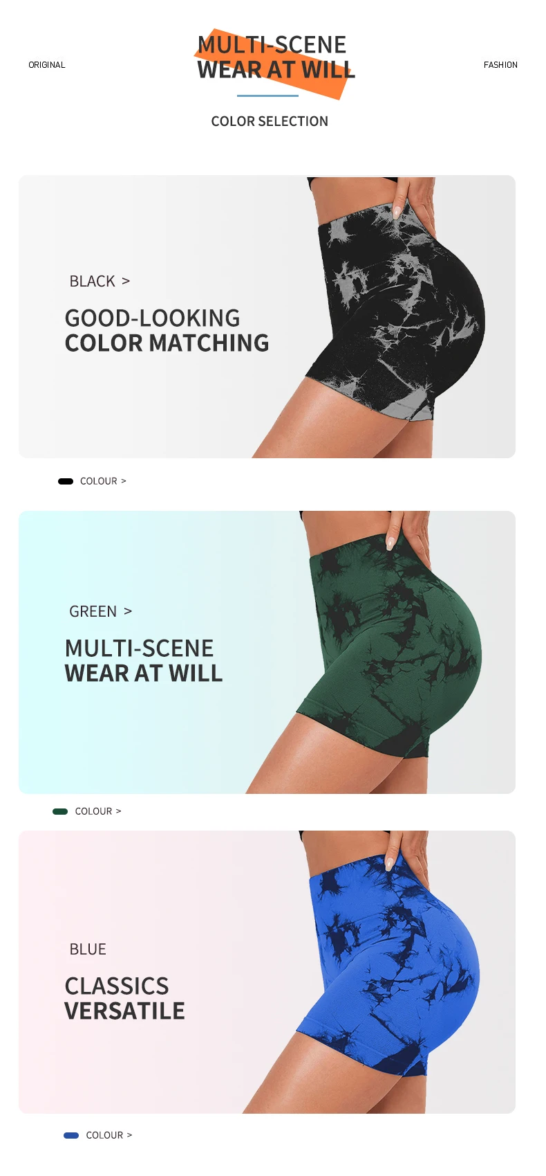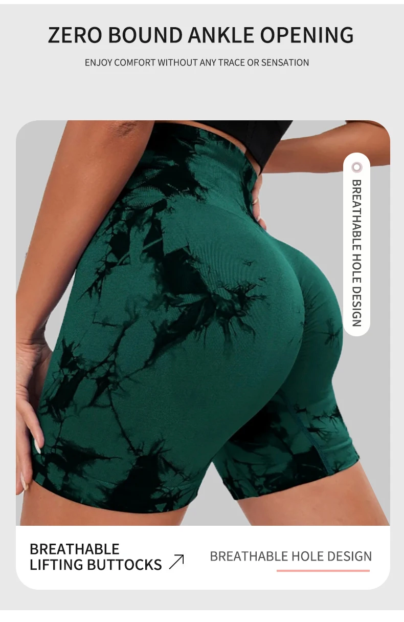 Seamless Tie Dye Sports Tight Three Piece Pants for External Wear Sexy Yoga Fitness Shorts for Women, High Waist Hip Lifting and