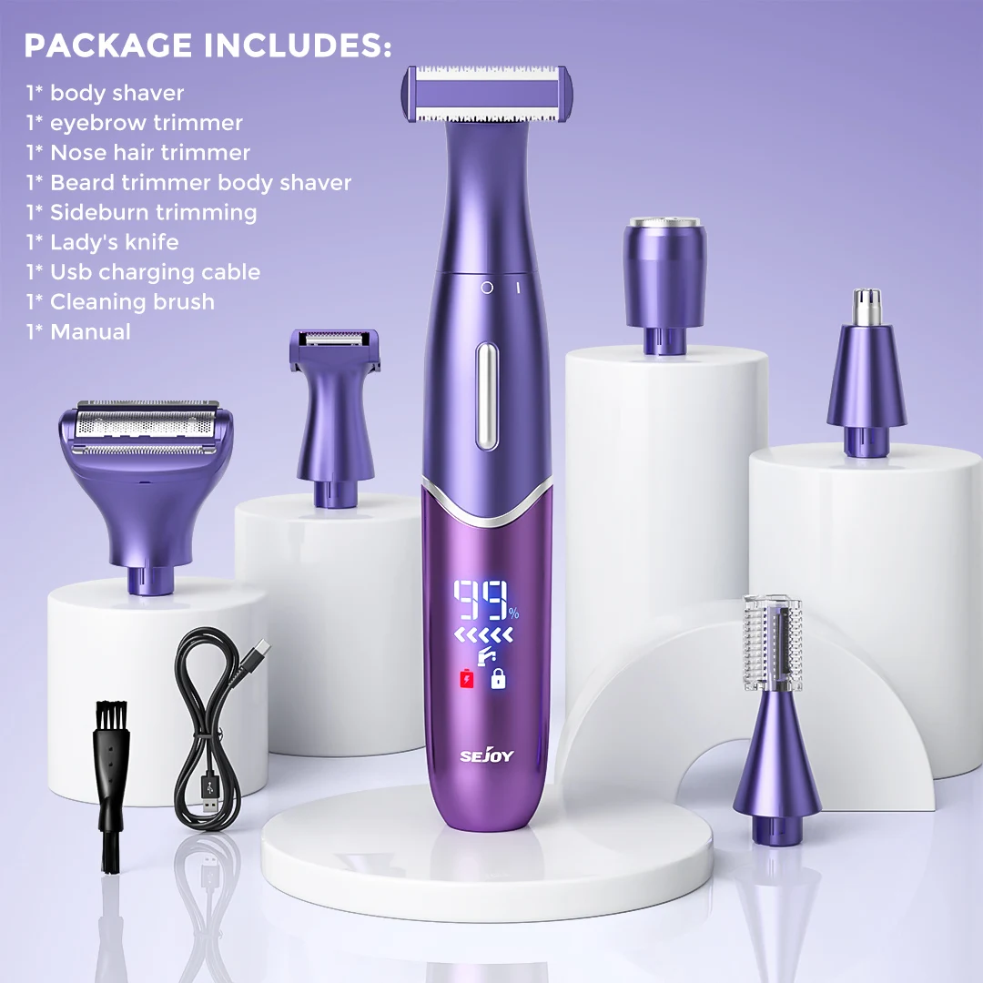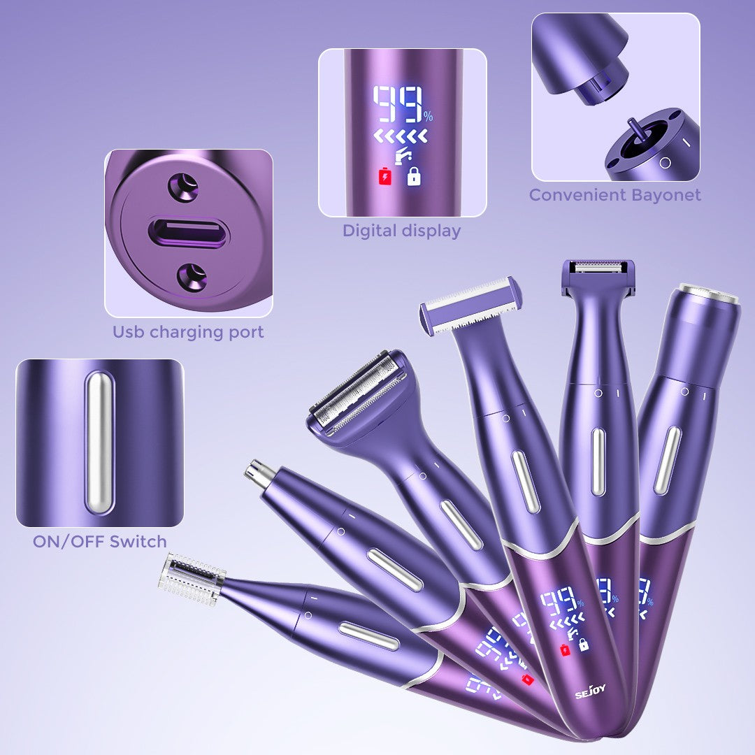 Sejoy 6-In-1 Body Hair Trimmer Kit Electric Beard Shaver Men Women Nose Hair Trimmer Eyebrow Razor Portable Body Hair Shaver