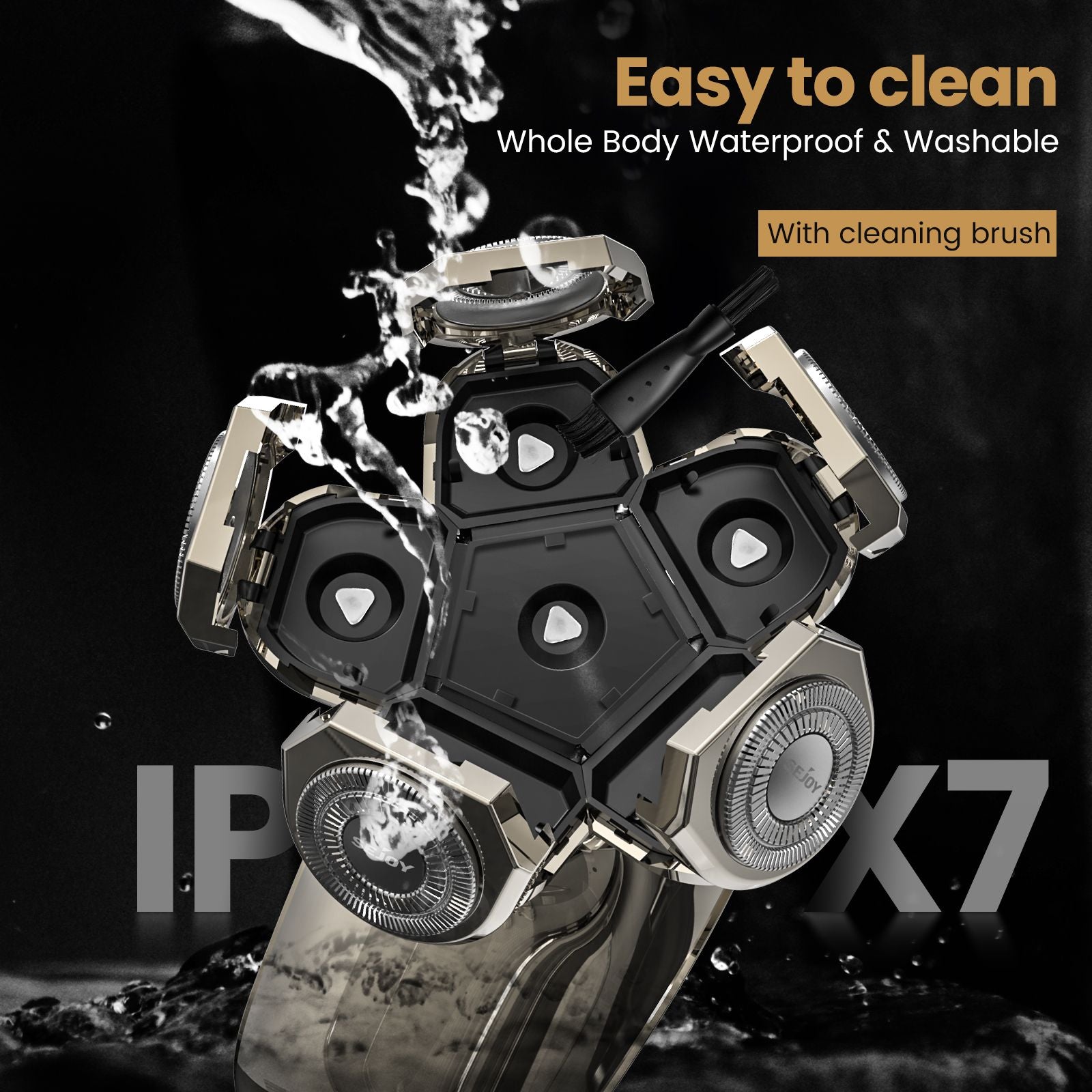6• Waterproof Design :Designed with waterproof features, this razor can be used in wet or dry conditions, making it ideal for everyday grooming.