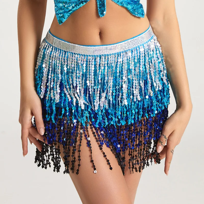 Sexy Sequins Tassel Dancewear Mini Skirt Women Clothes Jupe Femme Belly Dance Skirts Ladies Faldas Performance Stage Bottom Saia