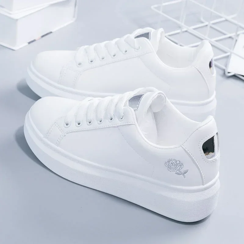 Shoes 2025 Women Running Spring Autumn Fashion White Breathable Embroidered Flower Lace-Up Casual Sneakers Zapatos De Mujer