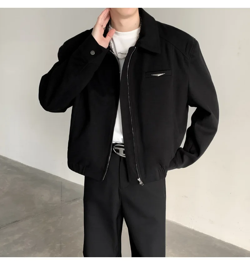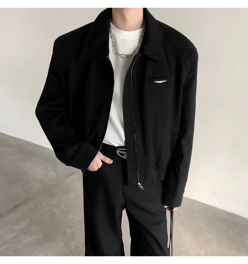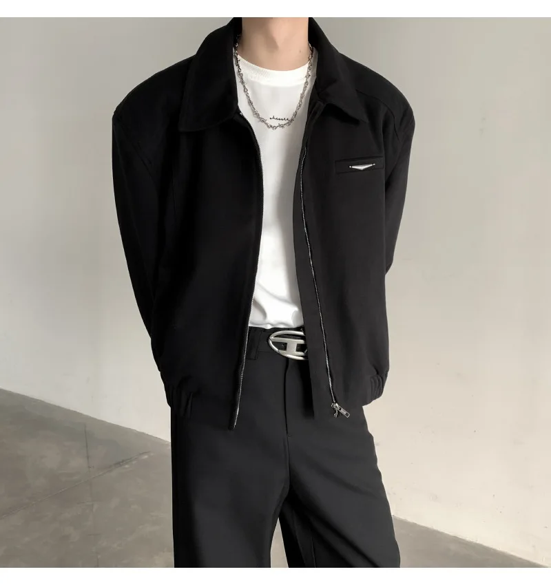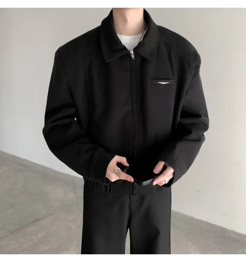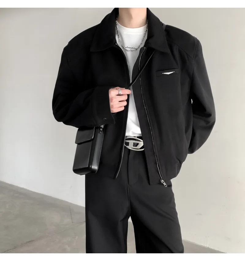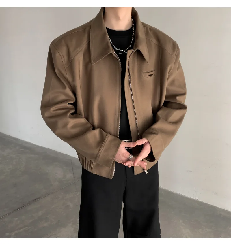 Short Jacket Men's Autumn Winter Handsome American Shoulder Pad Coat High-end Lapel Baseball Uniform