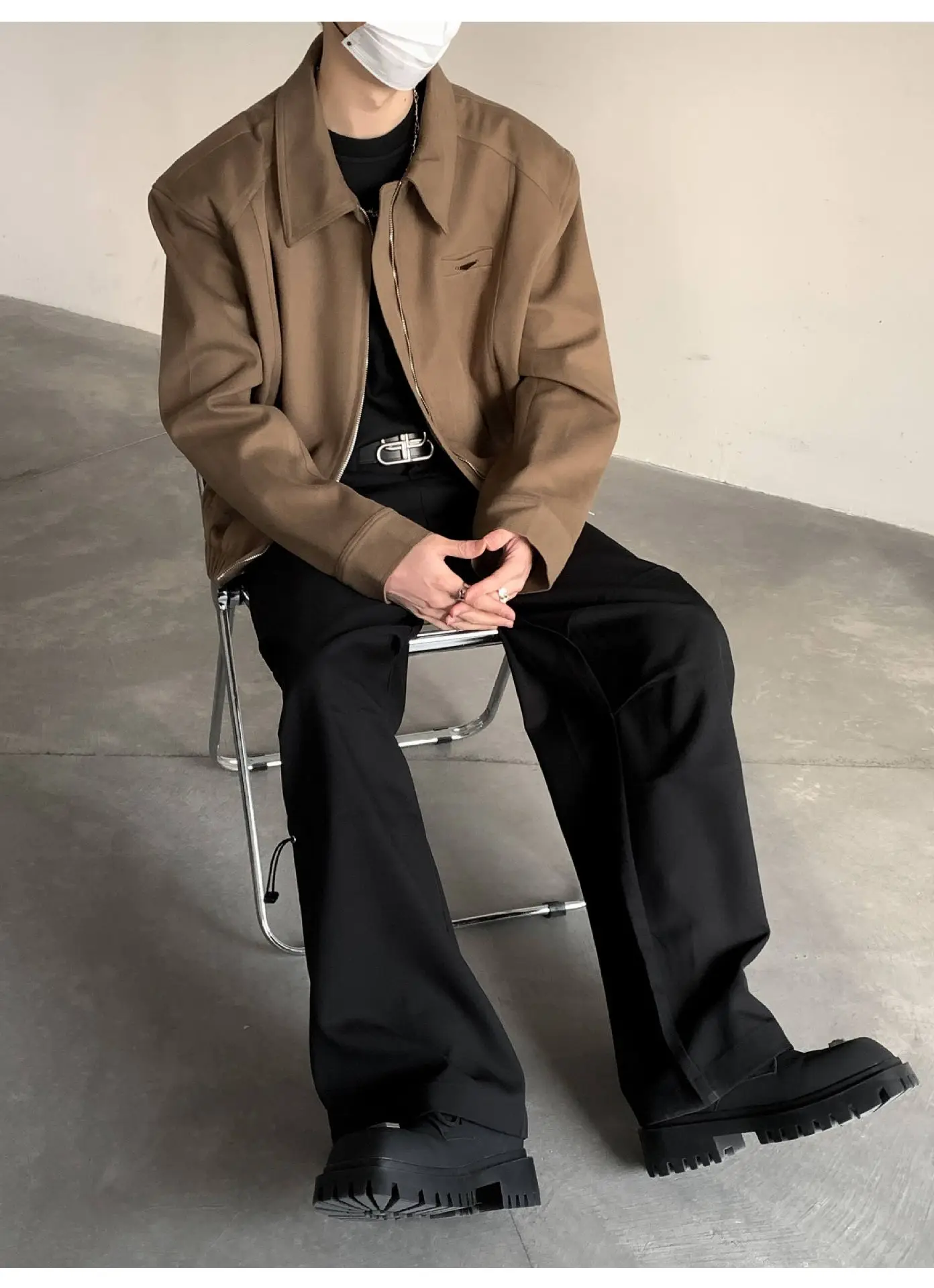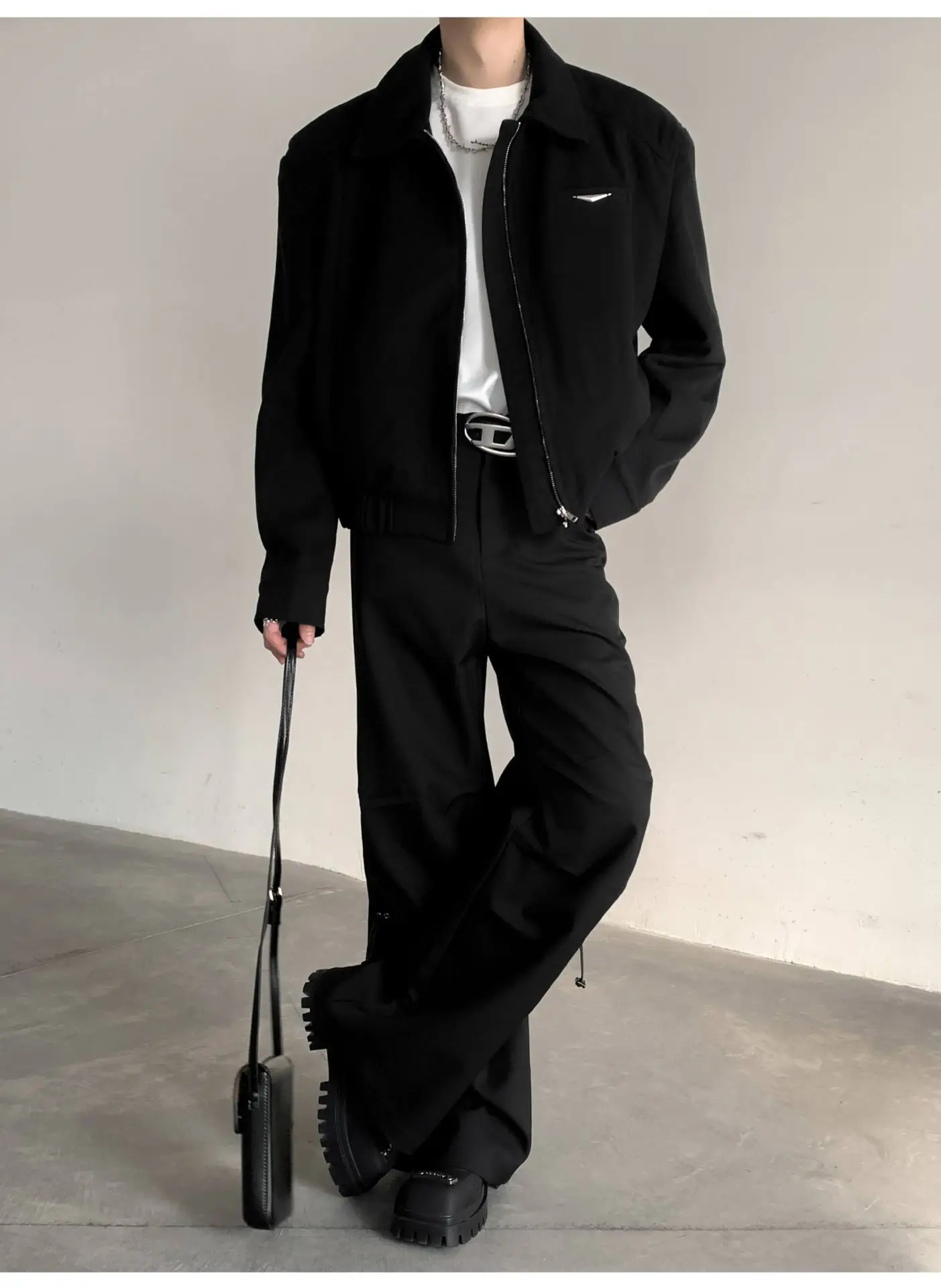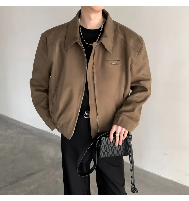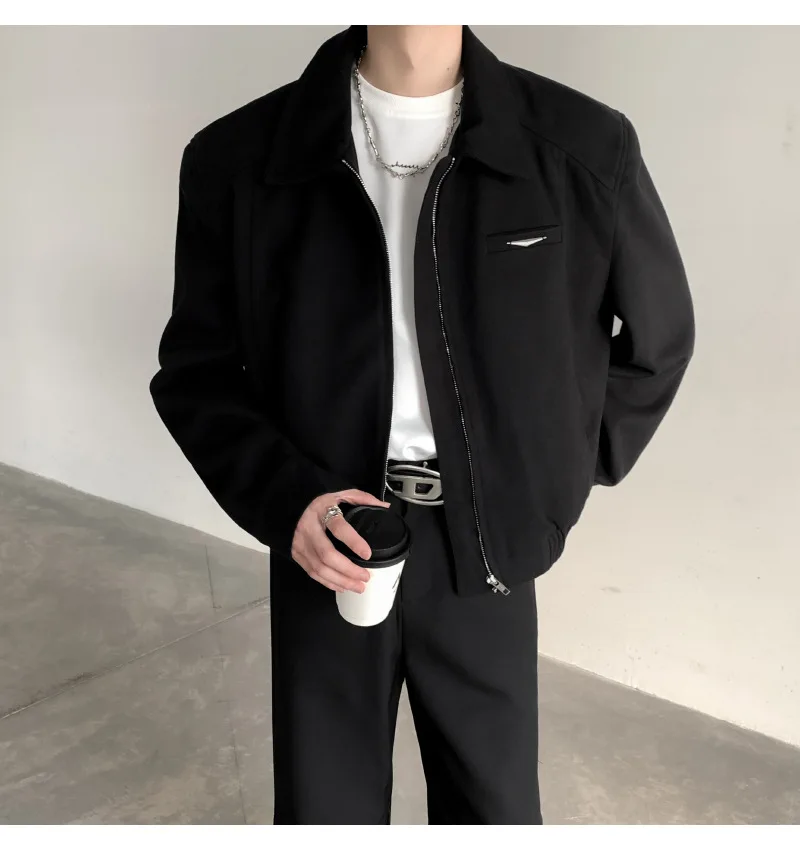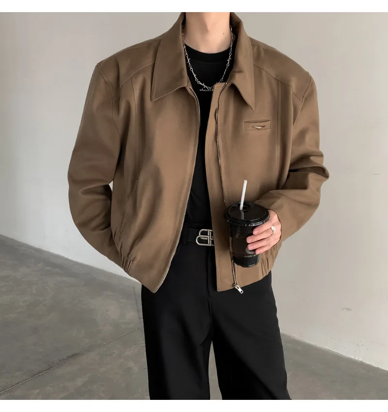 Short Jacket Men's Autumn Winter Handsome American Shoulder Pad Coat High-end Lapel Baseball Uniform