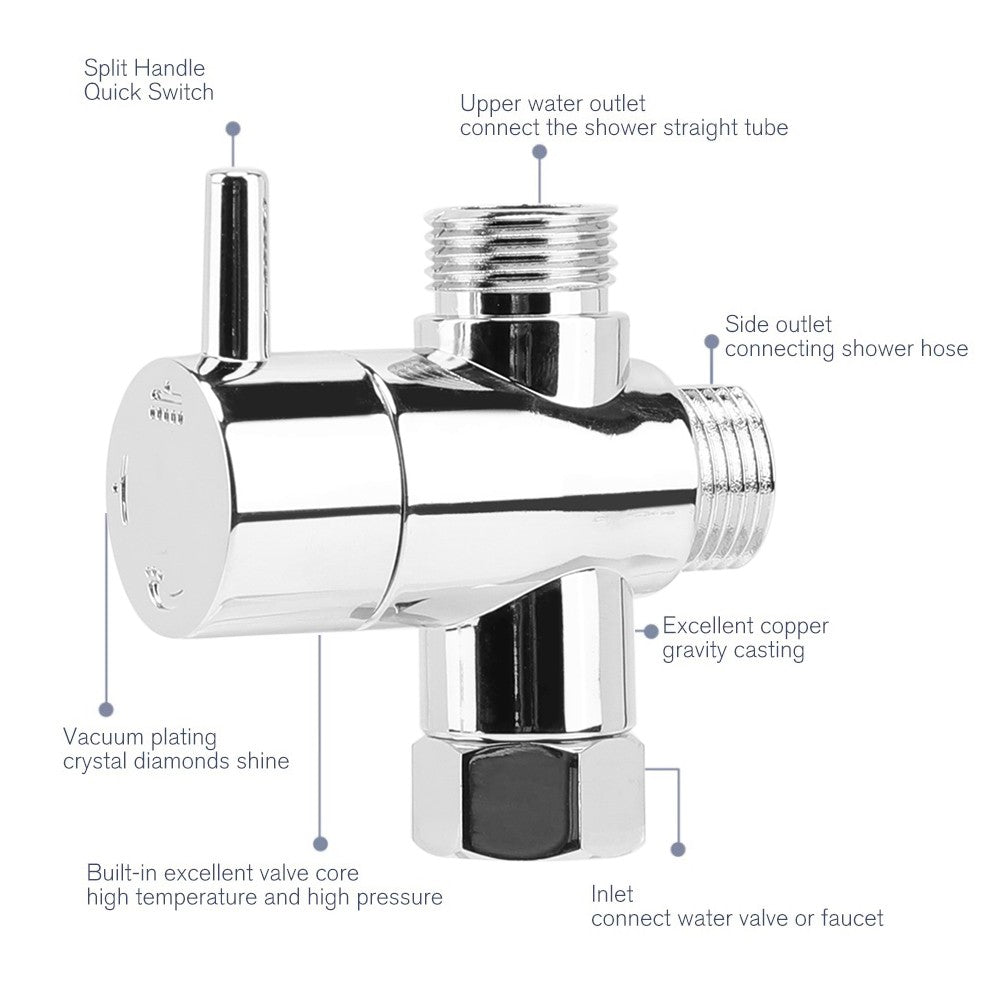 Shower Head Diverter Valve Anti-scratch Shower Arm Splitter Corrosion Resistant 3-Way Shower Arm Diverter Bathroom Accessories