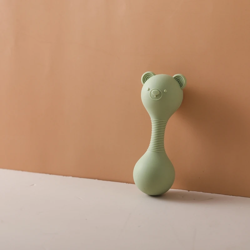The soft material of silicone and the rustling sound inside the sand hammer can bring fresh stimulation to the baby's touch and hearing, which helps the development of the baby's senses.