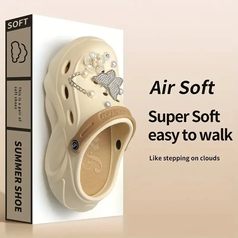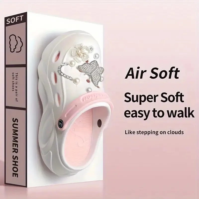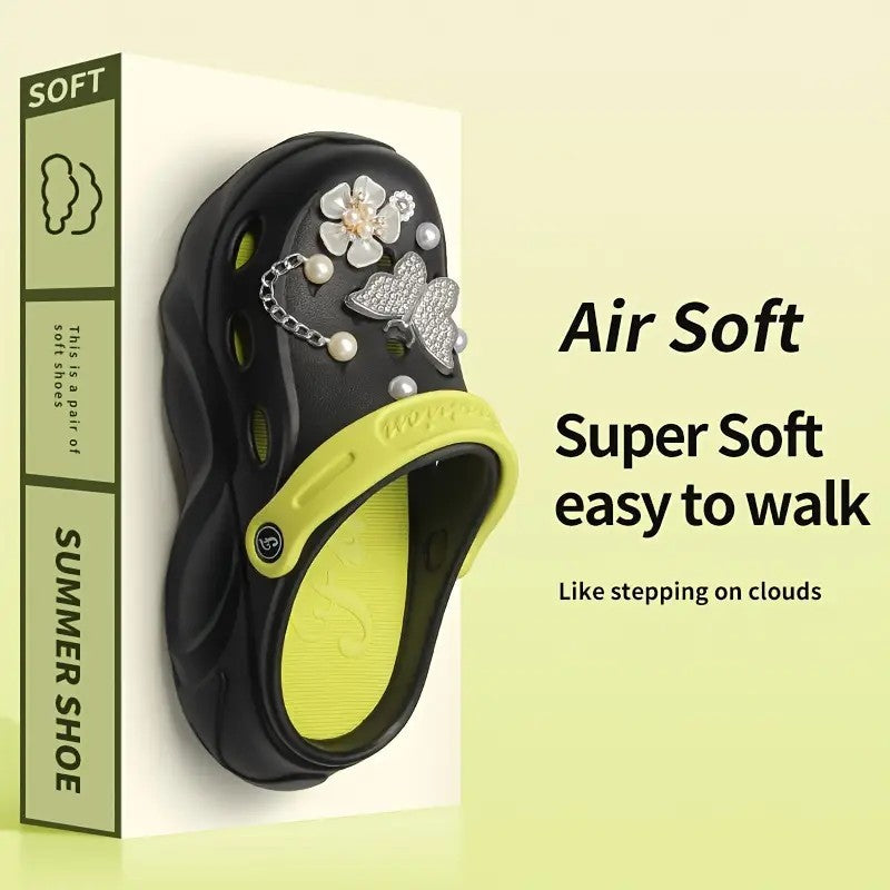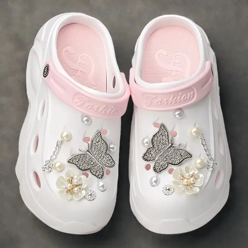 Silver Butterfly Platform Sandals for Women Summer Fashion Pearl Flower Decor Clogs Shoes Woman Thick Bottom EVA Beach Slippers