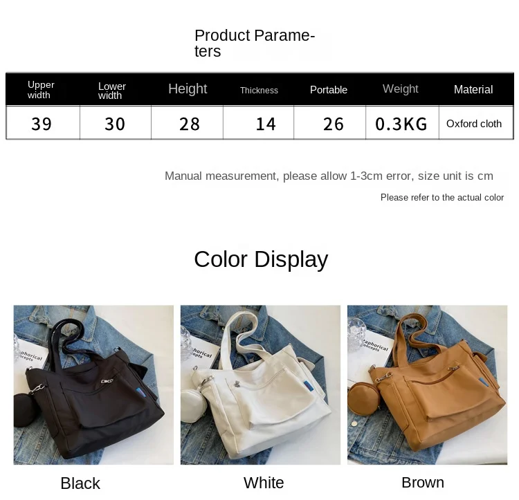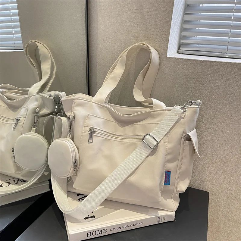 Simplicity Oxford Canvas Composite Shoulder Bag Solid Color Versatile Lazy Style Crossbody Bag Large Capacity Commuter Tote Bag