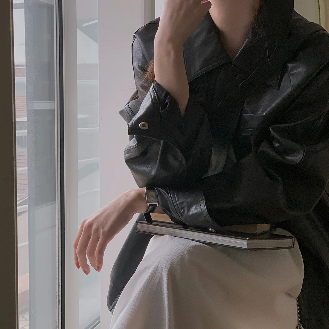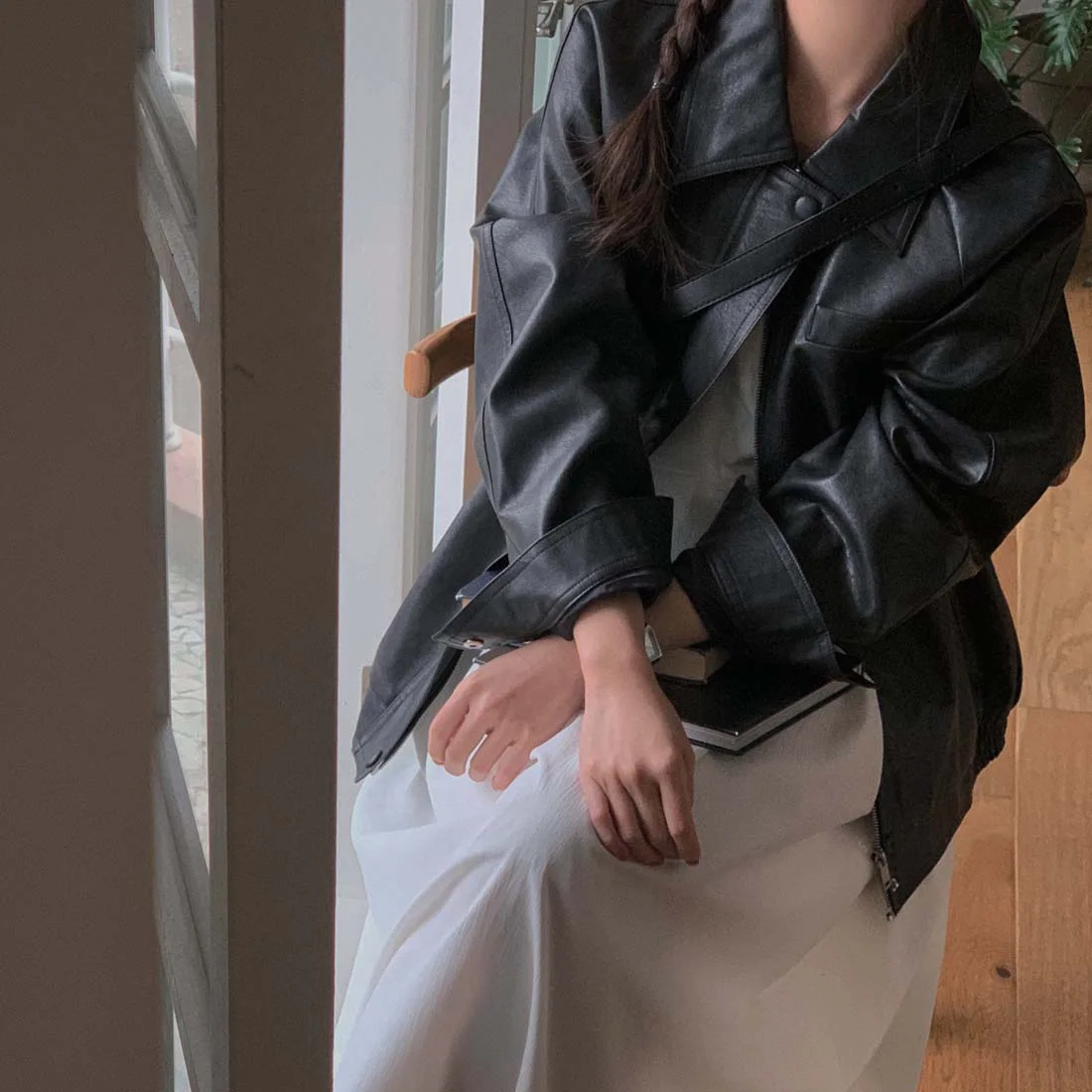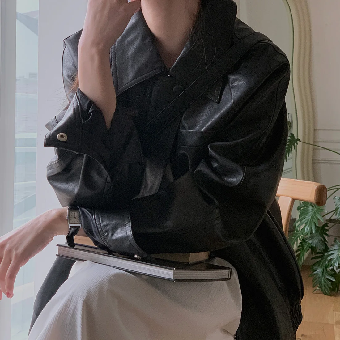 Embrace the French fashion with this chic PU leather jacket, perfect for a stylish commute.