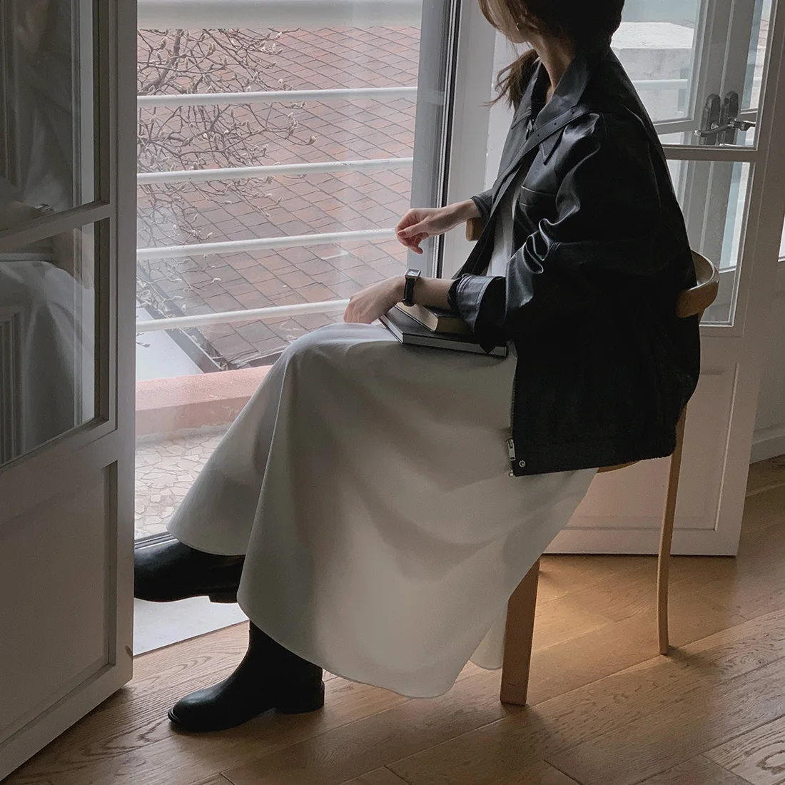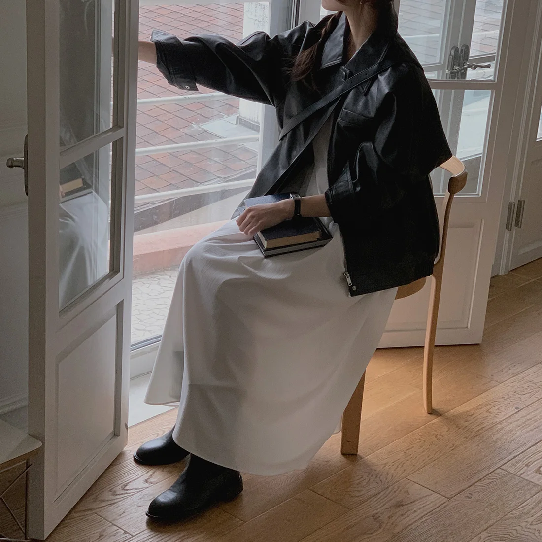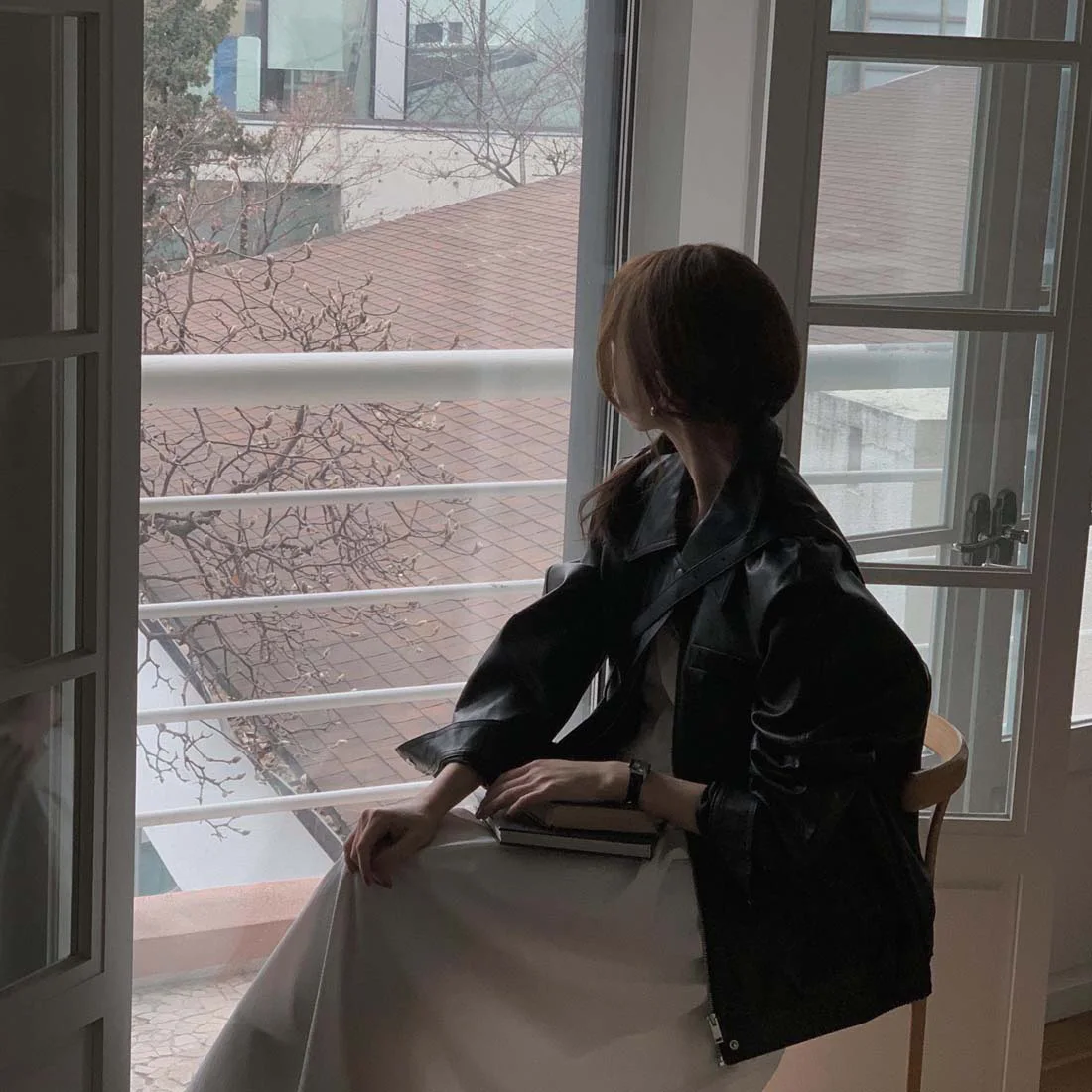 Embrace the French fashion with this chic PU leather jacket, perfect for a stylish commute.