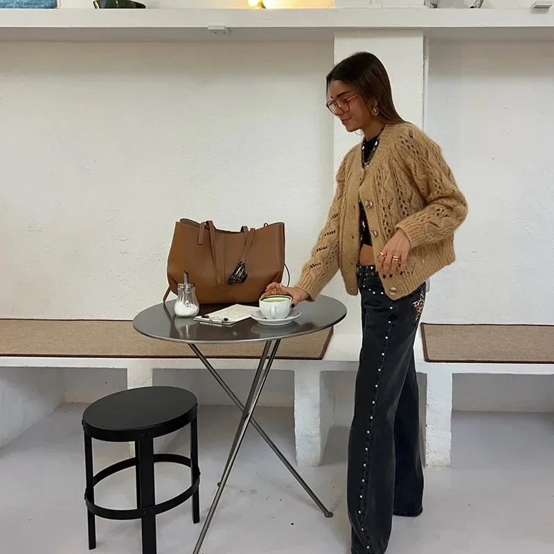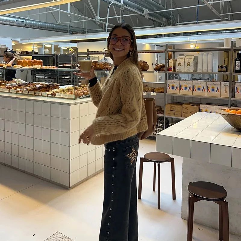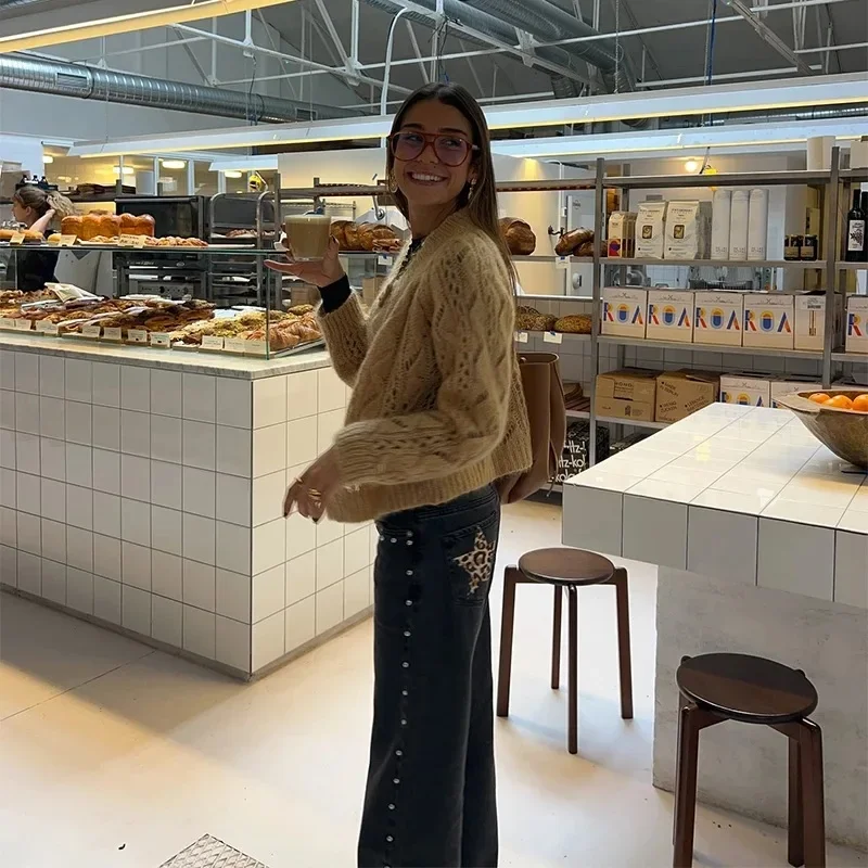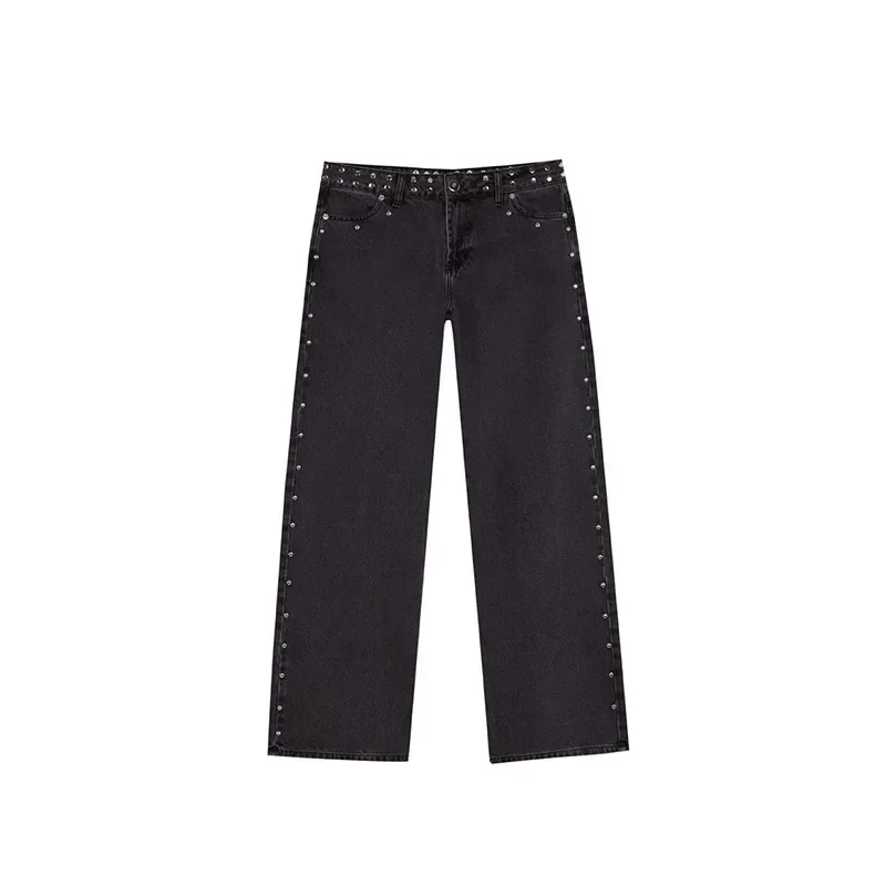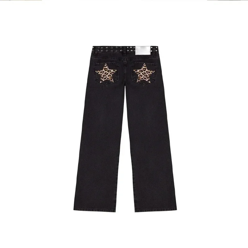 Spanish Fashion ONE DILEMMA Five-pointed Star Pattern Rivet Decorative Black Jeans Women's Autumn Multiple Light Blue Jeans